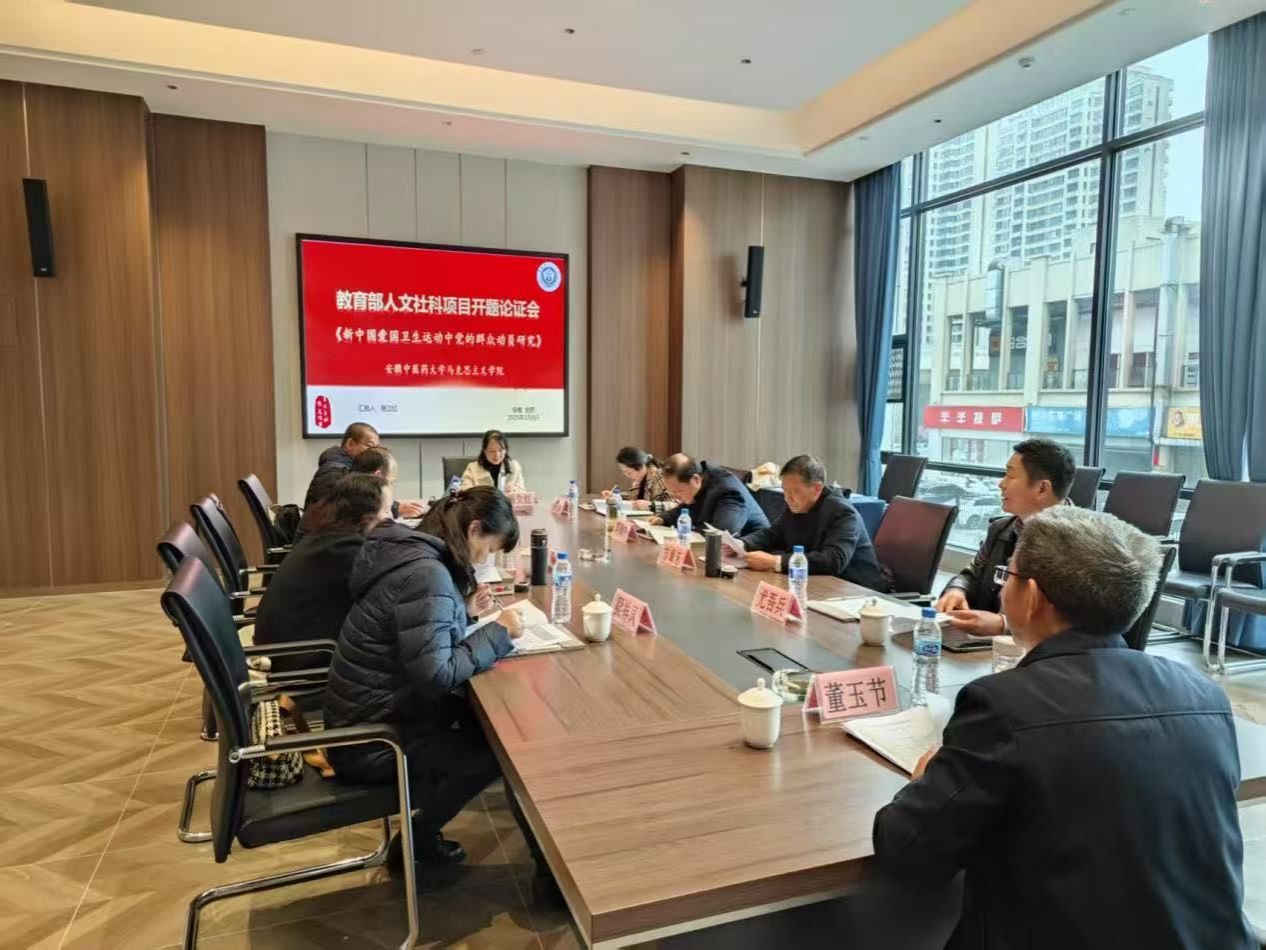 为深入推进教育部人文社科项目的研究,完善实施方案,落实研究计划,3月9日下午,马克思主义学院组织召开2024年度教育部人文社科项目《新中国爱国卫生运动中党的群众动员研究》开题论证会。会议由马克思主义学院院长董玉节主持,项目负责人杨立红教授作开题汇报。会议邀请合肥工业大学马克思主义学院陈殿林教授、安徽农业大学马克思主义学院方章东教授到会指导,马克思主义学院副院长郭跃及部分专家教授参与评议,部分课题组成员参会。