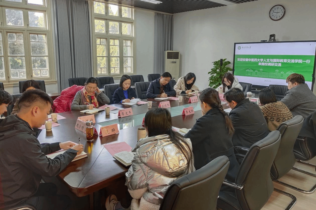 3月7日下午,人文与国际教育交流学院党总支书记金晓琴一行赴安徽农业大学国际交流合作处、港澳台事务办公室、国际教育学院调研交流,学院党总支副书记彭青和,分管外事工作副院长昂文平,留学生管理与教育科、招生科负责老师以及留学生兼职班主任参加了此次调研。安徽农业大学国际教育学院、国际交流合作处、港澳台事务办公室院长李大祥、副院长张华建和相关科室负责人、留学生辅导员参加交流,会议由李大祥主持。