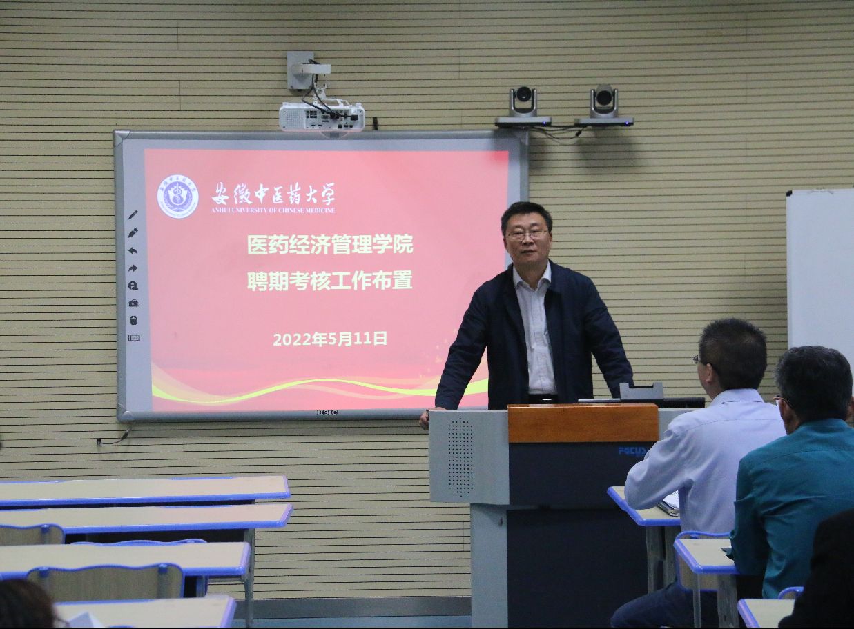 5月11日下午,医药经济管理学院召开聘期考核工作布置动员大会,学院党政领导、全体教职工参加,会议由院党委书记冯鑫主持。
