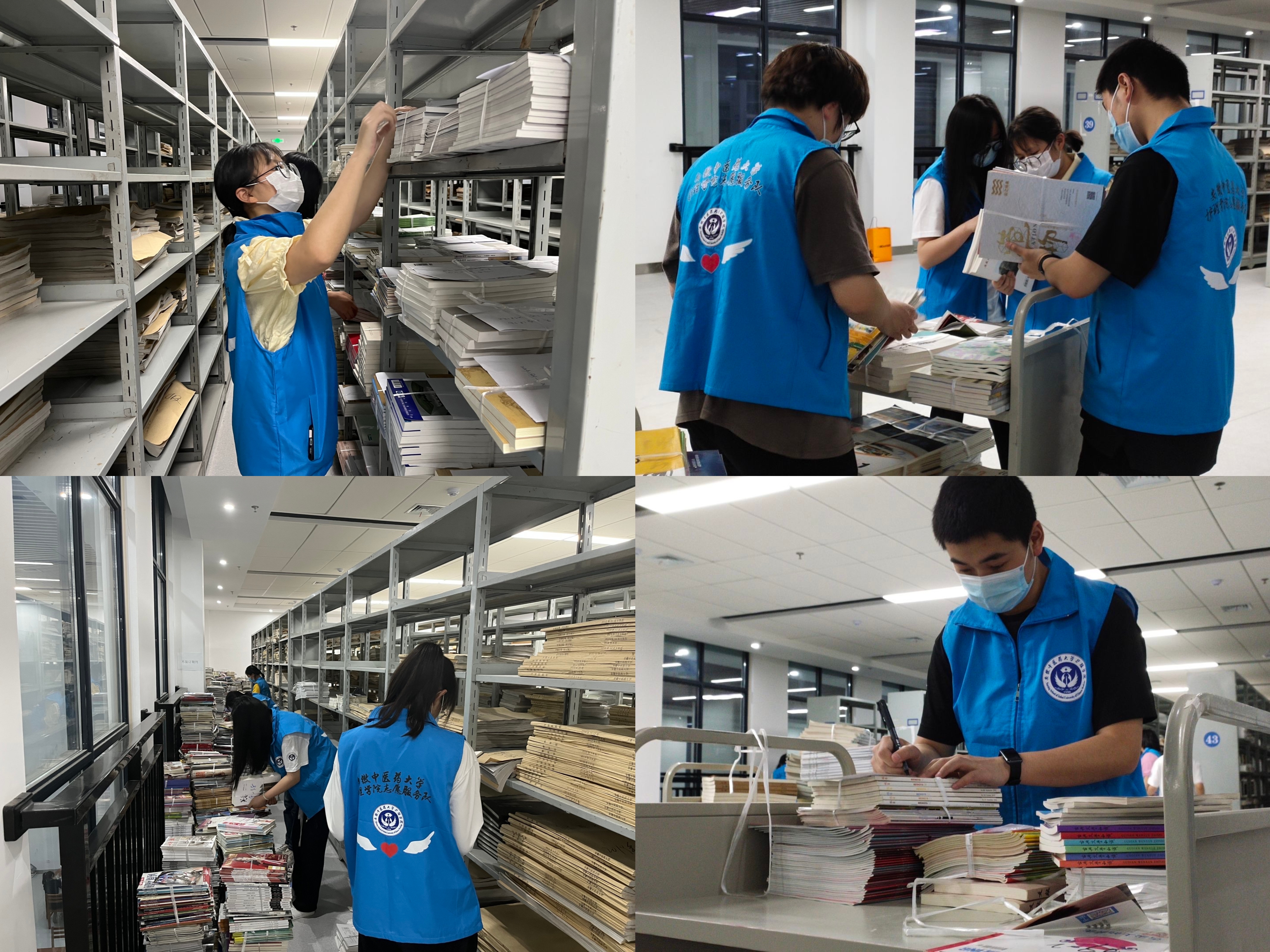 4月21日至5月中旬,护理学院青年志愿服务队的同学们每日参与校图书馆图书整理归档工作,用实际行动接受劳动教育,提高自身素质。在工作过程中,书目种类繁多且存在大量不成册的书目给同学们的整理进度带来了巨大阻碍,但大家通力合作、齐心协力、不惧困难,顺利完成了一千五百余套图书的初步归纳整理。
