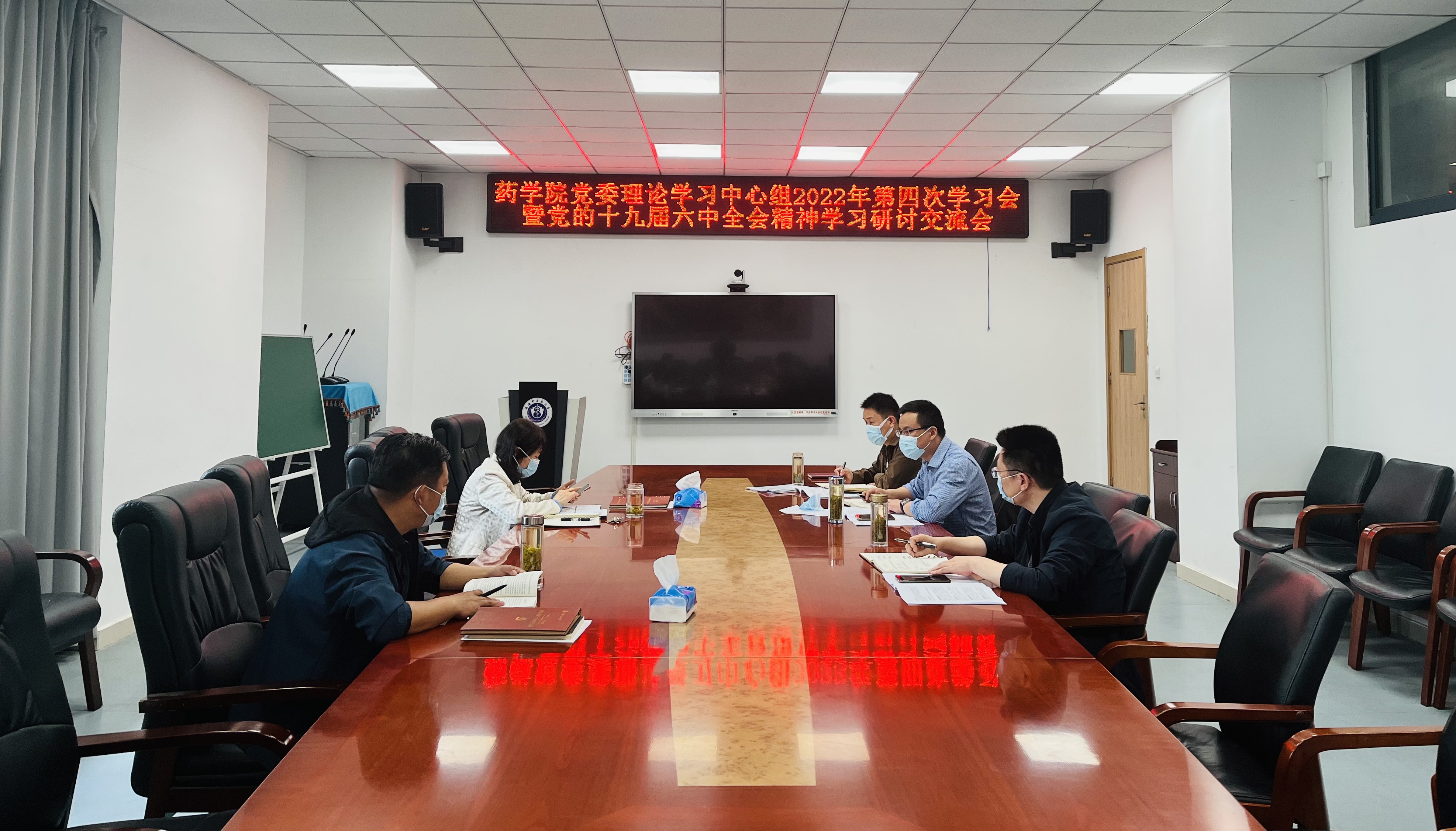 5月12日上午,药学院党委在313会议室召开2022年第四次中心组理论学习会暨党的十九届六中全会精神学习研讨交流会,药学院党政领导班子成员、党委委员参加学习会,会议由药学院党委书记胡卿主持。