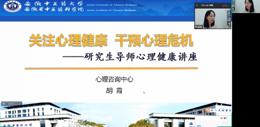 为促进研究生导师更好地了解研究生心理发展特点,准确识别学生心理常见问题,提升心理危机干预和心理健康教育水平,5月27日晚,学生处邀请学校心理咨询中心主任胡霞为研究生导师做了题为《关注心理健康,干预心理危机》的专题讲座。