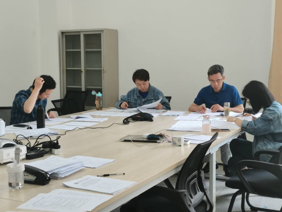 答辩现场,毕业生线上PPT汇报论文内容,答辩组线下听取汇报,专家针对论文选题、撰写格式以及论文内容等方面进行提问和指导,答辩同学在规定时间内回答专家所提出的问题。随后,答辩专家从学术水平与创新、论文撰写质量、答辩情况等进行公平合理评分。