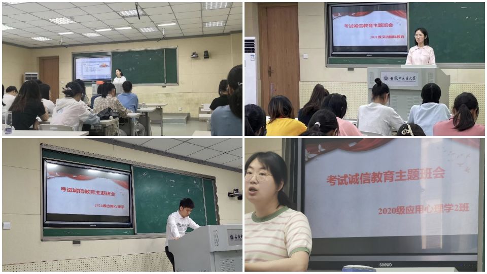 各班级着重强调即将到来的期末考试,四六级考试,普通话考试等,提醒同学们要提前规划、科学复习,严格按学校要求“K值排序法”在指定座位考试,带齐学生证、身份证、一卡通,各班辅导员带领班级同学重点学习了学校最新修订的本科生违纪处理办法和《学生手册》相关规定,要求同学们自觉遵守考场纪律,严肃考风考纪,自觉树立诚信考试光荣、弄虚作假可耻的纪律意识。