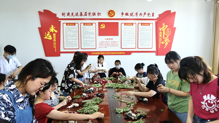 为弘扬传统文化,丰富学院师生文化生活,6月3日下午,针灸推拿学院在学院A325会议室举办了端午香囊艾束制作体验活动。学院党委书记蒋宏杰、院长唐巍、党委副书记、学院分团委及部分辅导员老师参加活动,与同学们一起动手制作芬芳馥郁的锦袋香囊。