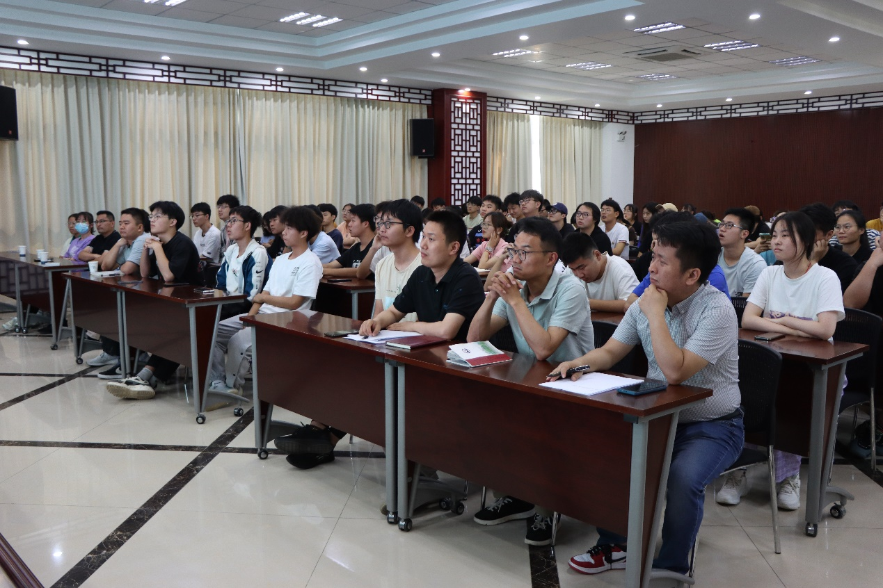 各参会老师交流发言。王虎传倡议青年学子应理论结合实践,从实践出发、在实践经验中积累收获,在大学时光中勤学苦学、实干实学,以优异成绩走出校园。蒋学阳结合自身经历,为同学们阐述了大学不是努力的终点,而是奋斗的起点;同学们应抓住机会,提升自我、丰富自我,珍惜韶华、不负青春。吴波以幽默诙谐语言向同学们说明了学习的必要性,作为老师,他会帮助同学们克服学习中困难、提供良好教学环境,同时希望大家享受时光追梦青春,在大学期间有所收获。