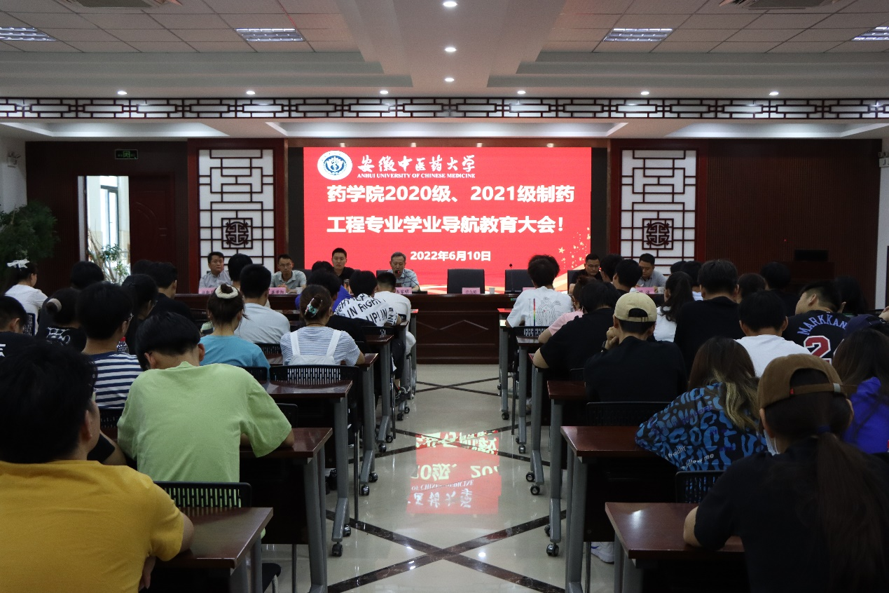 为加强专业建设,推动制药工程专业认证工作,提高学生学习积极性与主动性,6月10日下午,药学院在学院380会议室成功举办2020级、2021级制药工程专业学业导航教育大会。药学院党委副书记徐先韬,学校教学督导、药物化学研究所所长李家明,药物化学系系主任李传润,合肥医工药物设计科室主任许勤龙,2020级制药工程班班主任王虎传、药物化学研究所研究员蒋学阳、药物化学系副教授吴波及2020级、2021级制药工程专业全体学生参加此次大会。
