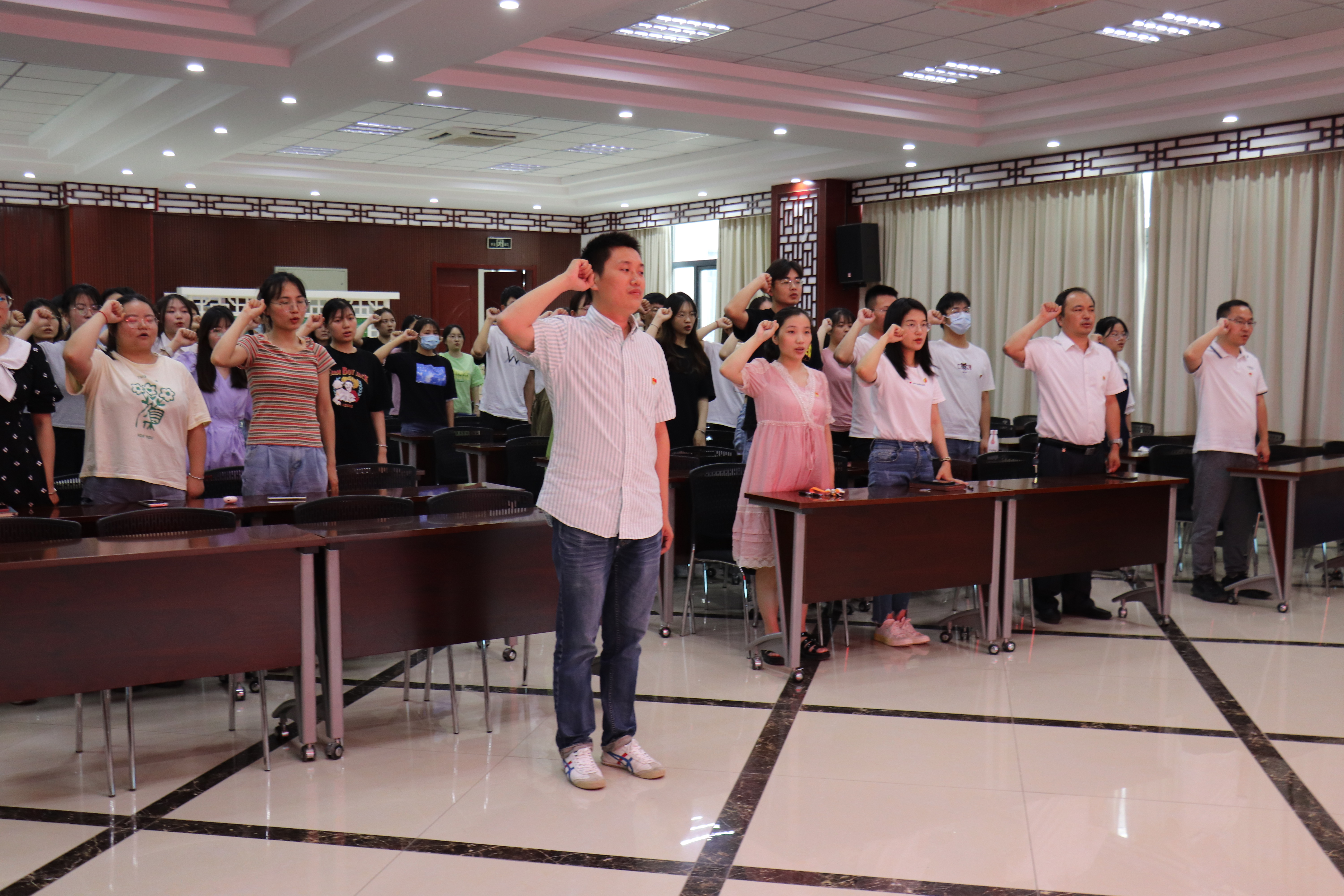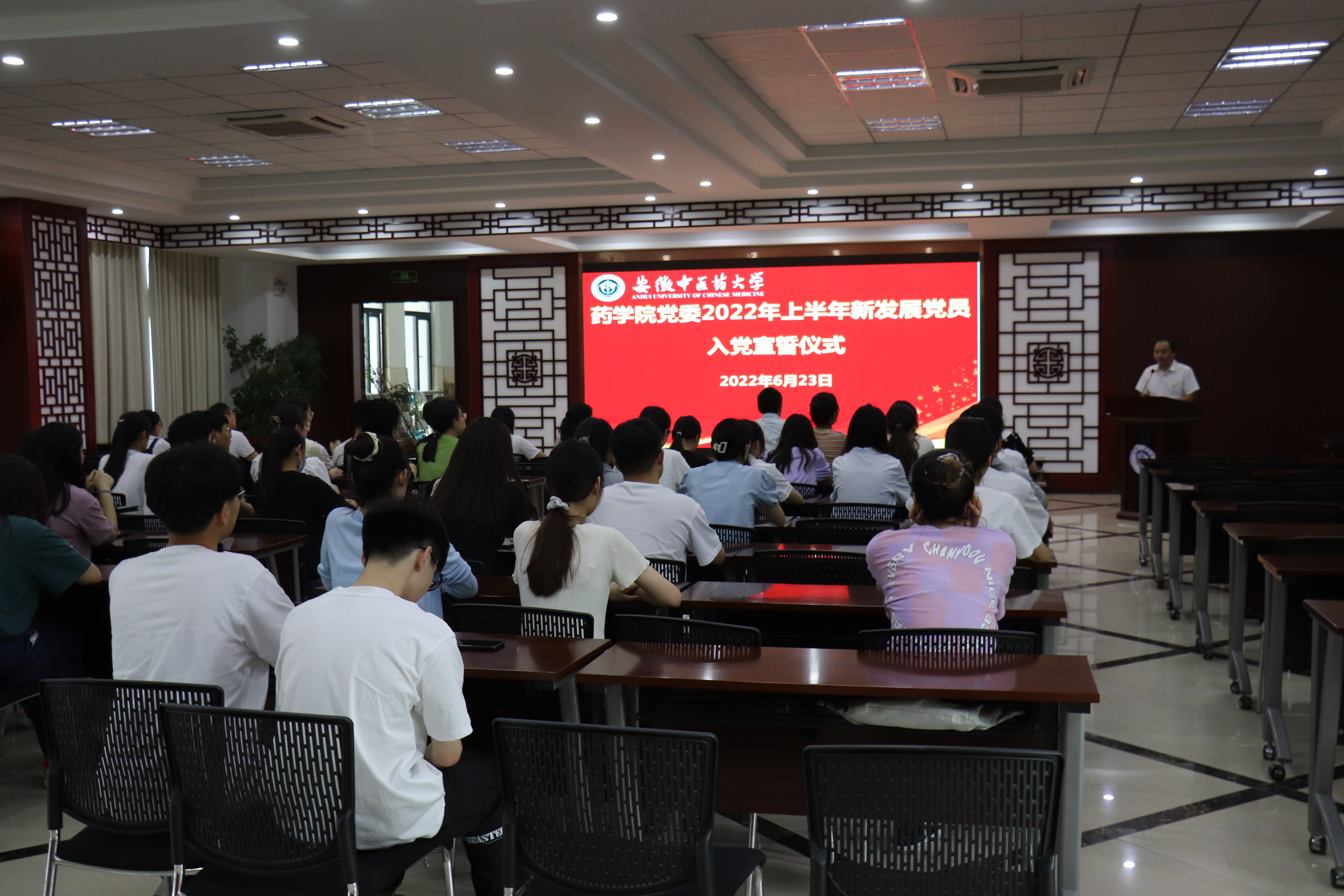 6月23日中午,药学院党委在沁馨堂学术报告厅召开了2022年上半年新发展党员入党宣誓仪式,药学院党政领导、各学生党支部书记、2022年上半年新发展的83名学生党员和1名教师党员参加本次入党宣誓仪式。