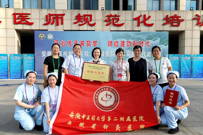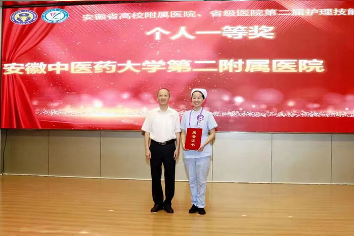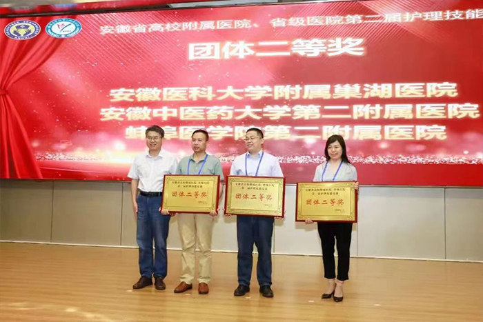 6月24日至25日,由安徽省总工会主办,安徽省教科文卫体工会和蚌医一附院联合承办的2022年安徽省高校附属医院、省级医院护理技能竞赛在蚌埠举行。来自安徽省高校附属医院、省级医院16支代表队参加比赛。经过激烈角逐,第二临床医学院由周朦朦、汤娇娇、陆汝莉、王兆婷4位选手组成的代表队,以总分第三获得团体二等奖;选手周朦朦从64名参赛选手里脱颖而出,以总分第一获得个人一等奖。