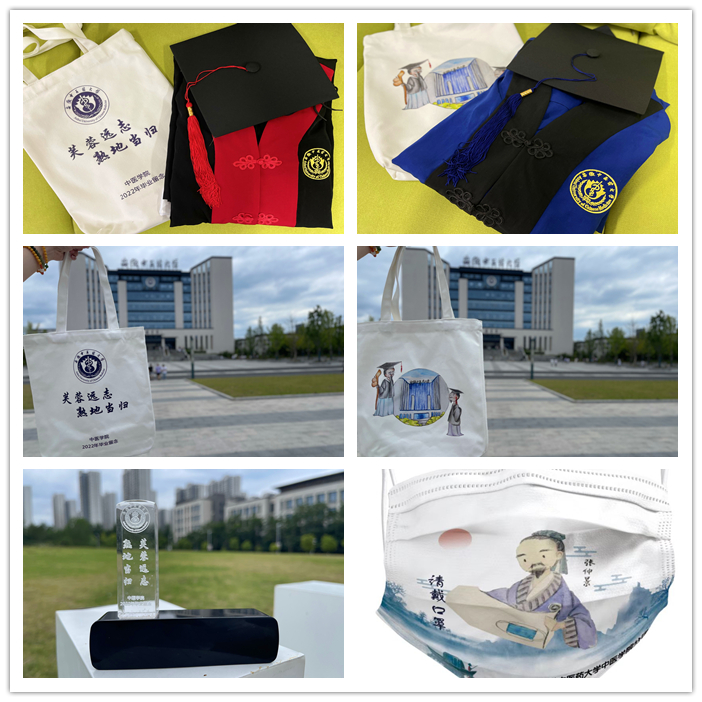学院还为毕业生精心准备了毕业纪念礼包,包含一个帆布袋、一套学位服、一片口罩和一枚印章。帆布袋由学院本科生原创绘制,祝福毕业生一“帆”风顺、前程似锦;学位服寓意“学”业有成,再创辉煌;中医学子定制版口罩,提醒毕业生要遵守疫情防控政策,关“罩”健康;刻有校徽和毕业生姓名的专属印章,寓意母校和同学们心心相“印”,印章上还刻有“芙蓉远志 熟地当归”,提醒毕业生在追求人生理想的同时不忘中医学院这一坚强后盾,常回家看看。