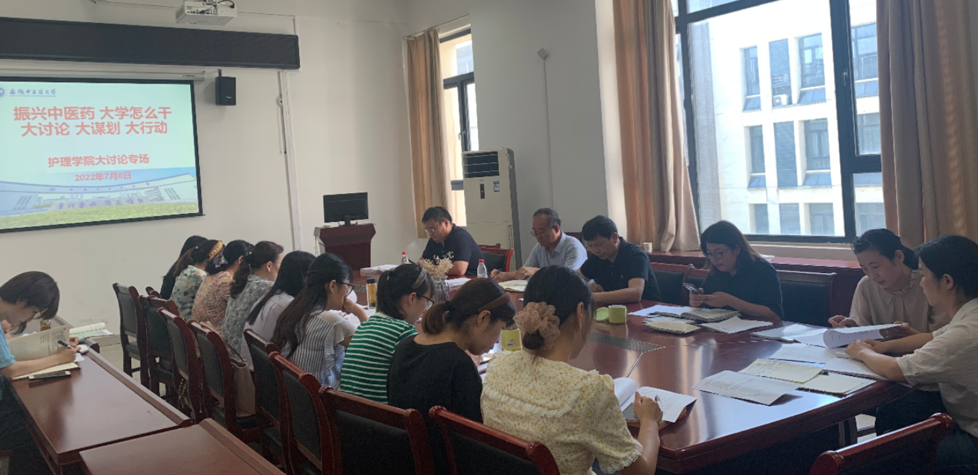 7月8日上午,为有效落实学校党委关于“振兴中医药,大学怎么干”大讨论、大谋划、大行动的工作方案要求,护理学院召开了专场学习研讨会议,学院党政领导、各支部书记、各办公室、各系、教研室、中心主任和副主任参加了此次会议。会议由学院党委书记吴成长主持。