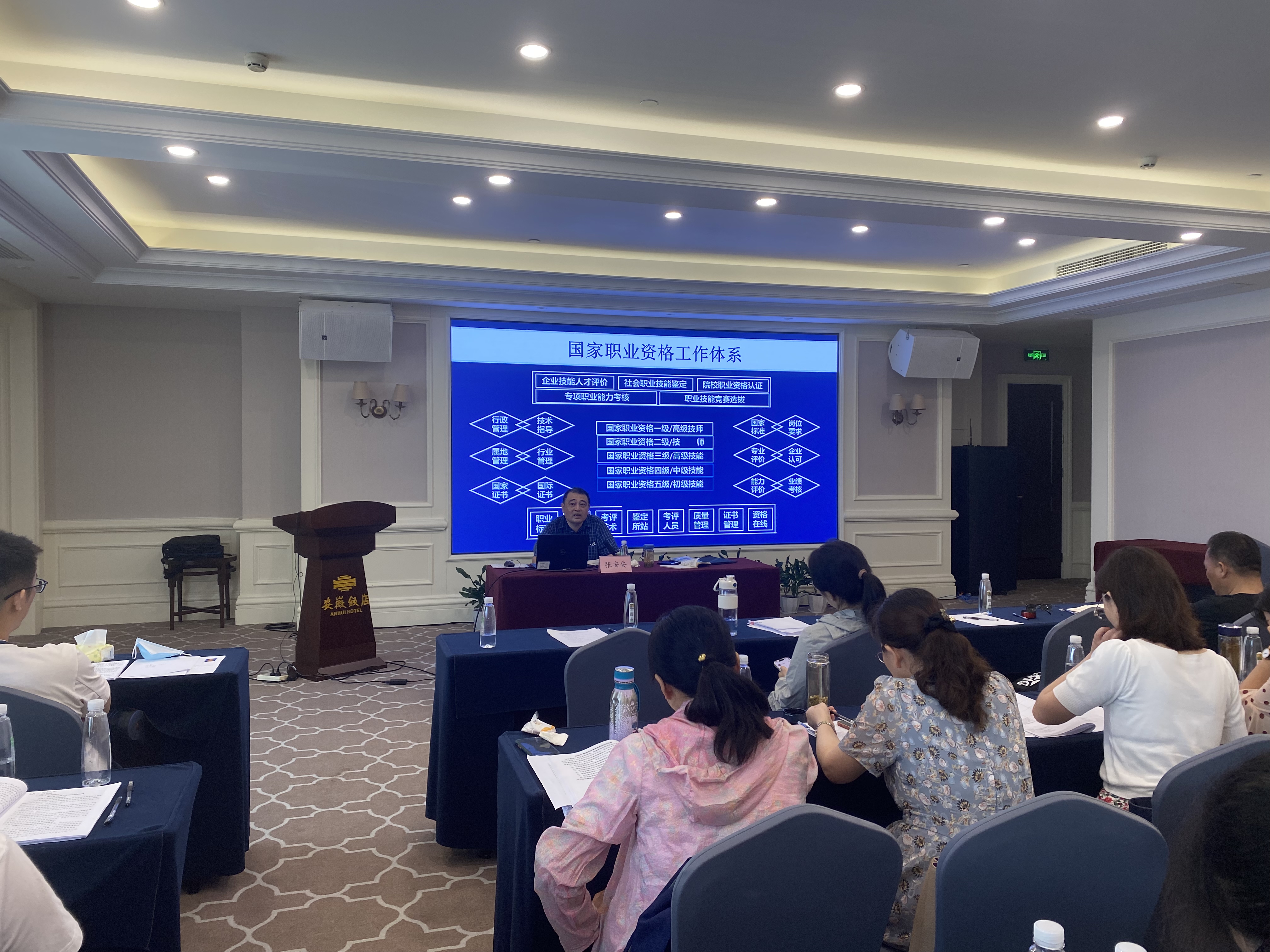 7月12日上午,继续教育学院邀请了安徽省人社厅职业能力建设处二级调研员陈德宝、安徽省人社厅技能人才管理服务中心副主任张安安、安徽中医药大学周传云副教授三位专家,在安徽饭店对来自我校药学院、护理学院、针灸推拿学院、中西医结合学院、继续教育学院的50名老师进行培训。