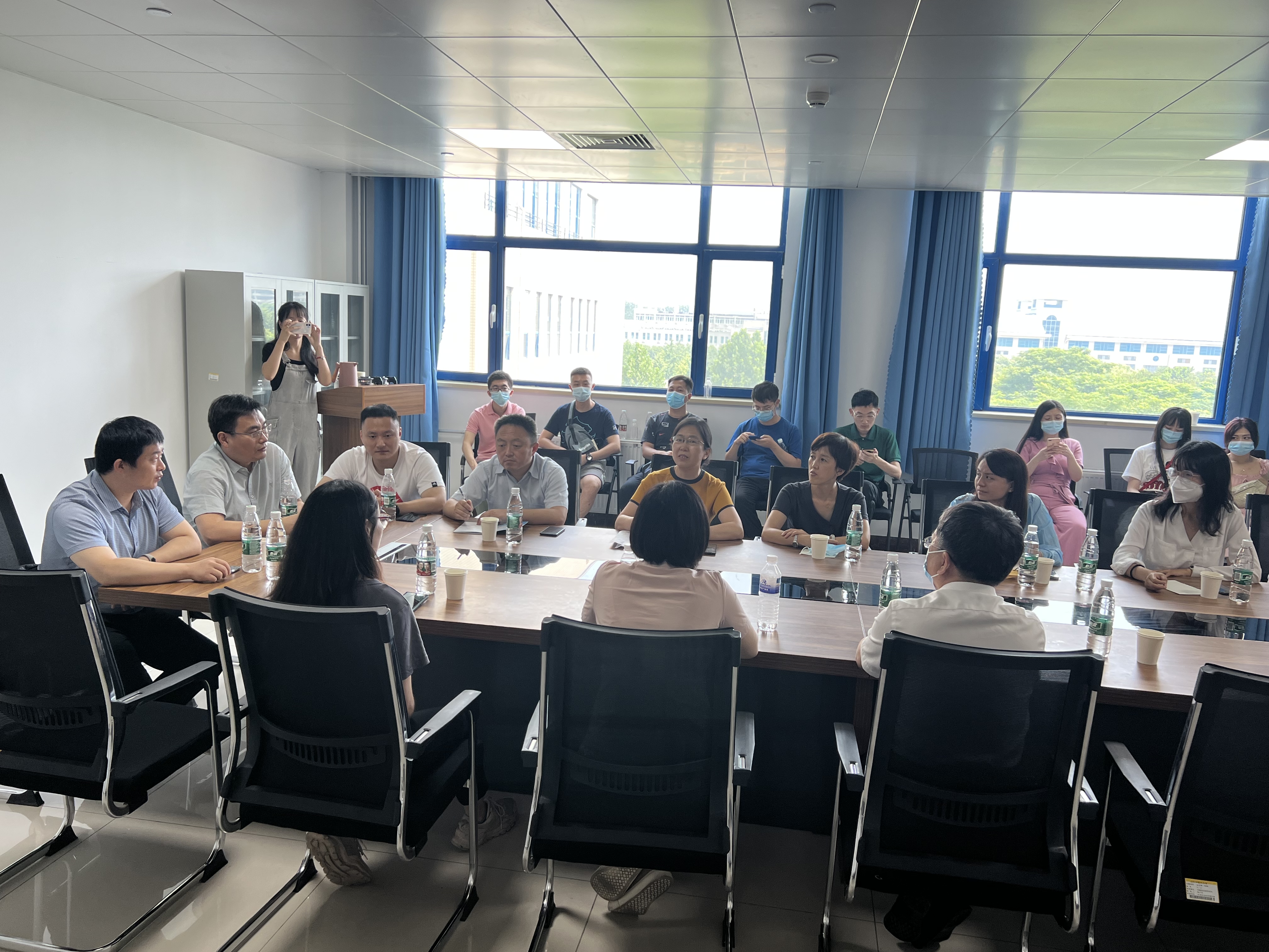7月21日上午,针灸推拿学院教工第一党支部及学院部分教师在院长唐巍教授率领下,赴山东中医药大学参观学习,交流研讨实验室建设和实验室安全相关工作。山东中医药大学中医药创新研究院针灸研究院院长陈永君教授、针灸推拿学院副院长孔庆悦陪同考察。