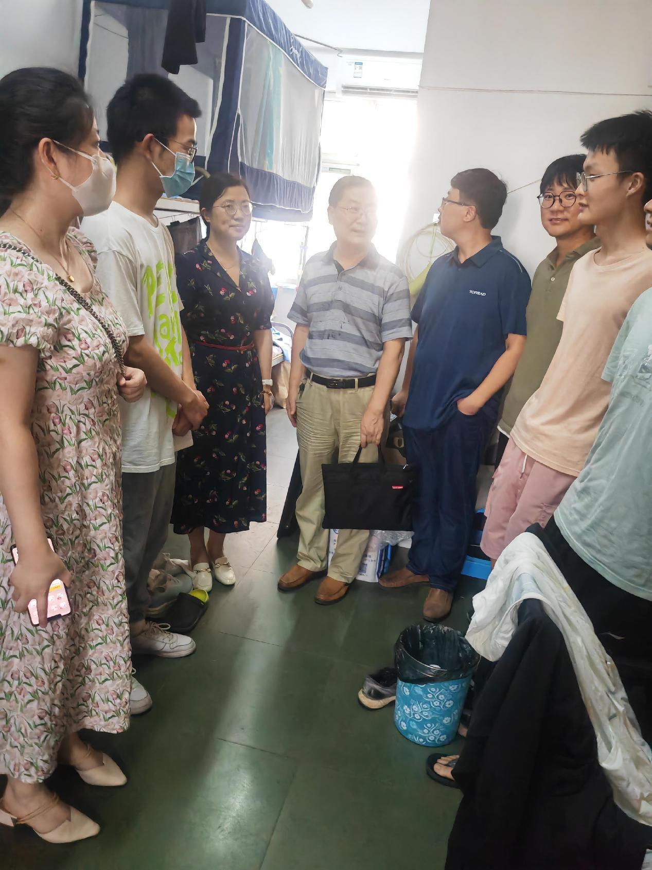 为做好留校学生疫情防控和教育引导工作,强化校园安全教育管理,7月22日下午,中西医结合学院党委书记尹必武、学院党政领导以及学生辅导员,走访史河路校区暑期留校学生宿舍,深入了解留校学生学习、生活状况。