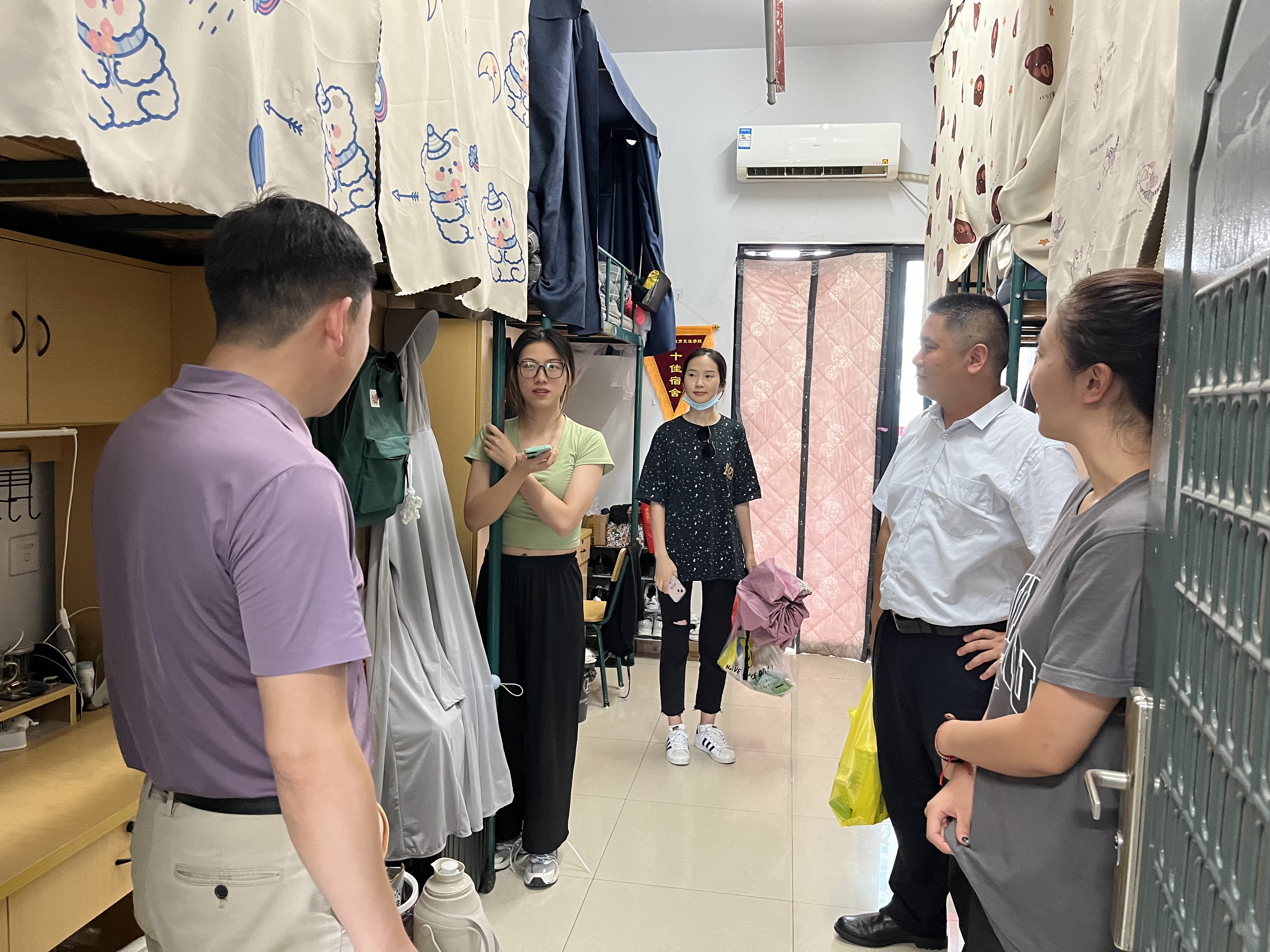 为深入了解暑期在校学生学习、生活状况,贯彻落实常态化疫情防控工作要求,7月28日中午,人文与国际教育交流学院党总支书记姚为久,副书记桂大鹏带领学生辅导员检查走访暑期留校学生宿舍,了解留校学生学习与生活情况,仔细询问同学们的需求,传递温暖与关怀。