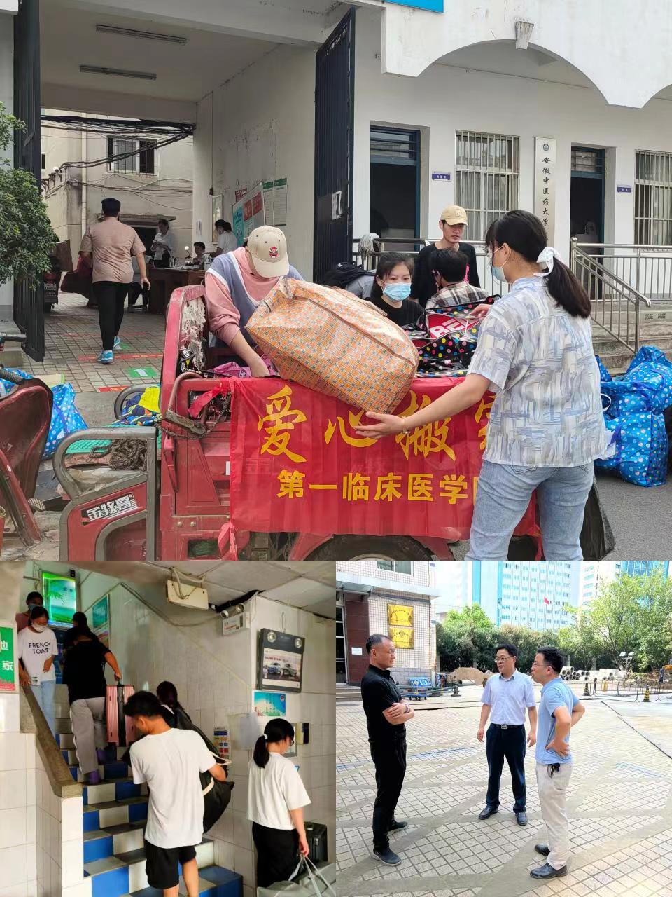 学生处副处长詹钟华、第一临床医学院副院长黄传兵、中医学院党委副书记宋婷婷、学生科负责人、各班级新老辅导员到现场指挥、维持搬家秩序,为学生做好服务。