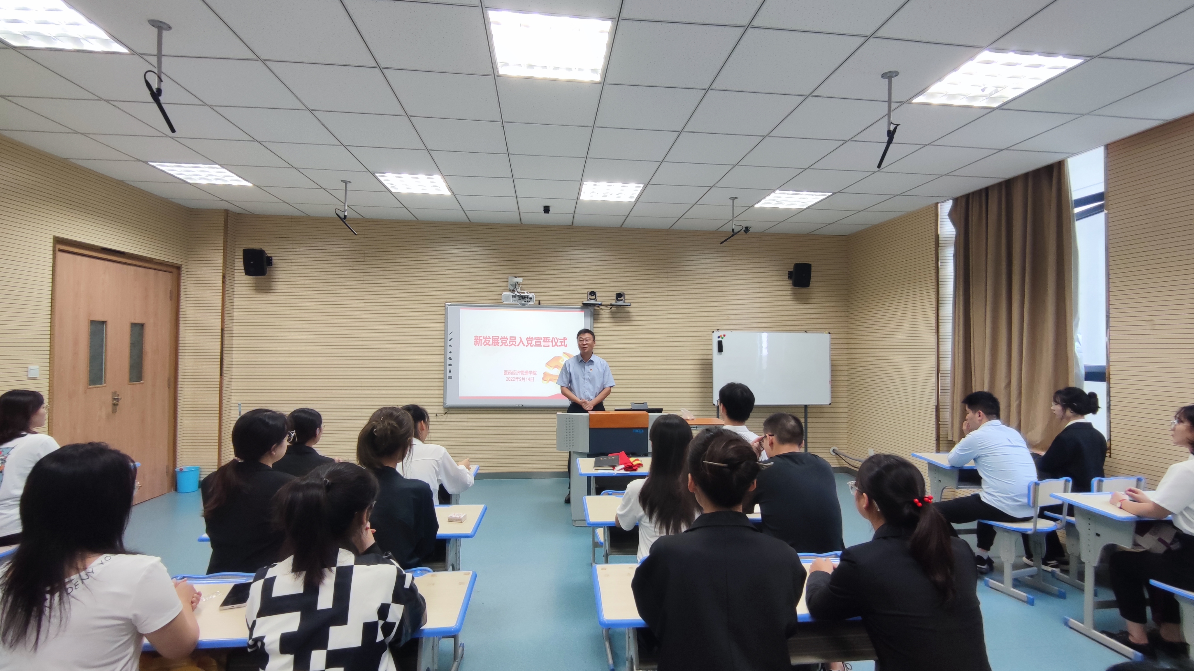 9月14日下午,医药经济管理学院举行新发展党员入党宣誓仪式,学院党委书记冯鑫、组织员、2022年新发展的46名学生党员和1名教师党员参加宣誓仪式。