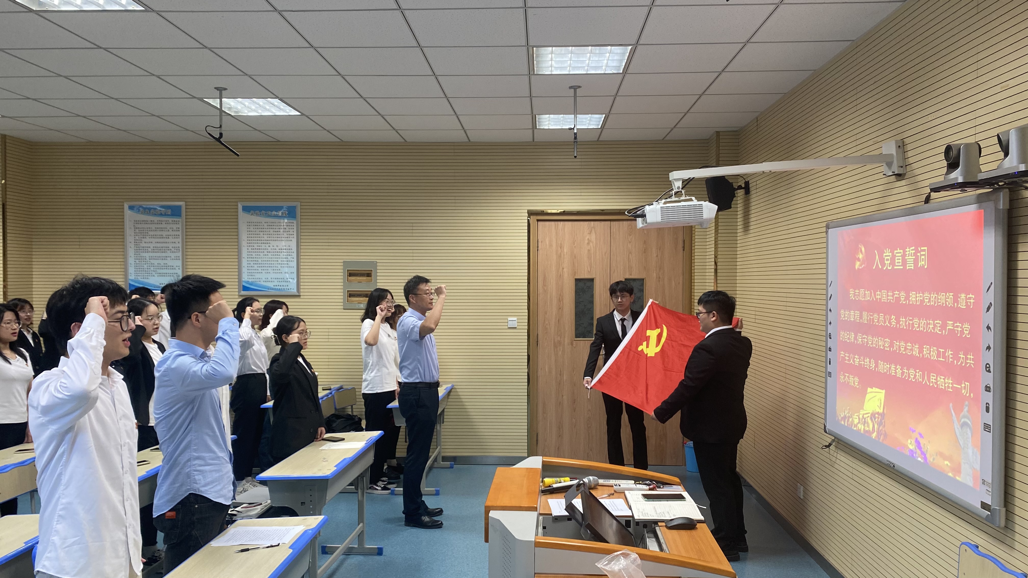 宣誓环节由冯鑫领誓,面对鲜红的党旗,47名新发展党员目光坚定,高举右手,立下铮铮誓言,誓言铿锵有力,掷地有声,庄严地表达了为共产主义奋斗终身的信心和决心。