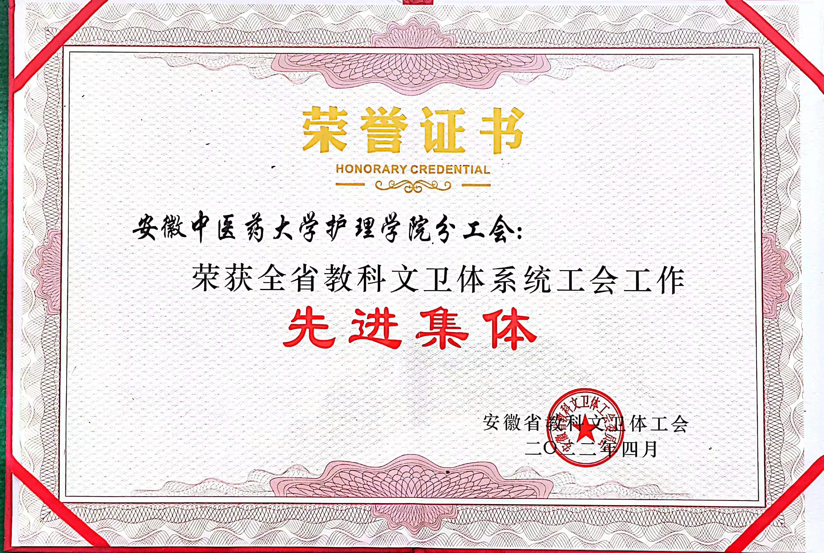 安徽中医药大学护理学院分工会荣获全省教科文卫体系统工会工作先进集体。(护理学院/文图 吴成长/审核)
