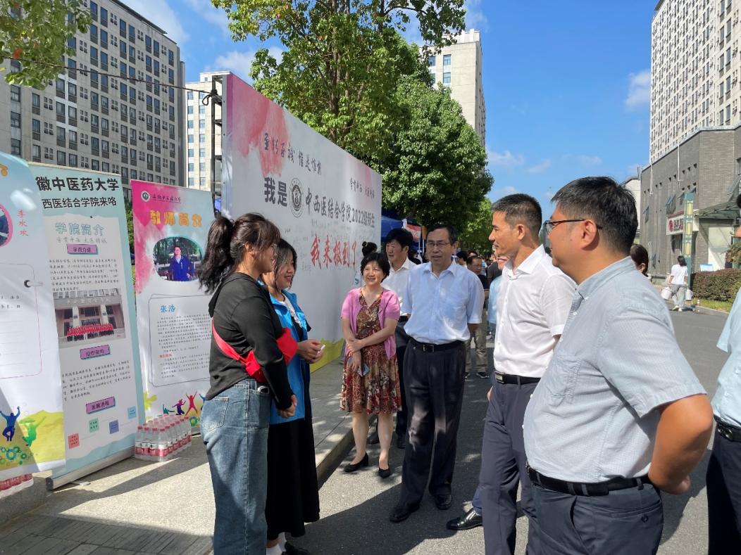 校党委书记王琦携校党政领导到达学院报到现场,与前来报到的2022级新同学亲切交流,关心和了解他们的入学报到情况,叮嘱新生提高防诈骗意识,并慰问了现场志愿者。