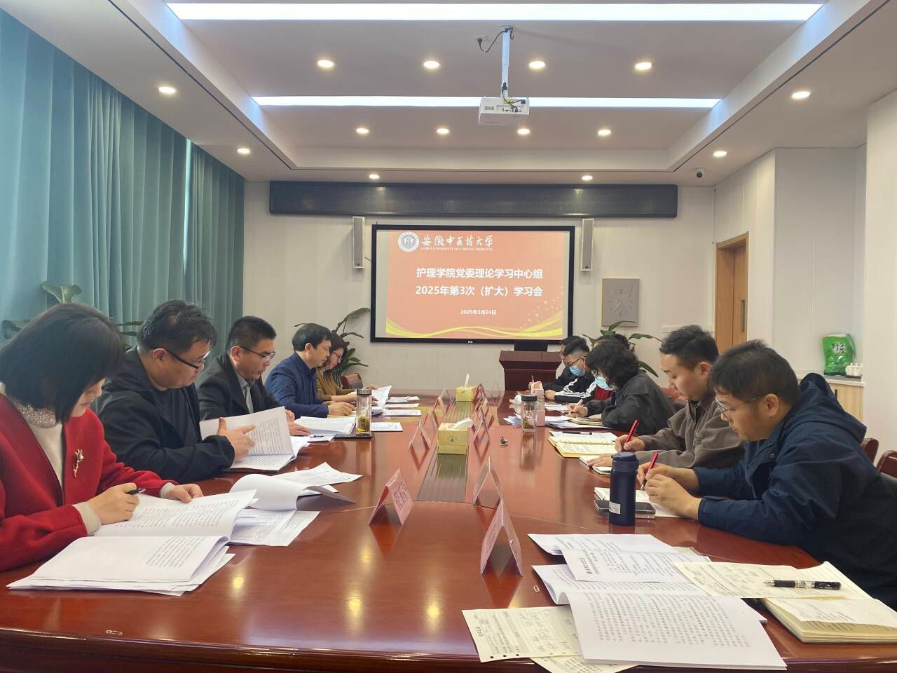 3月24日下午,护理学院召开党委理论学习中心组2025年第3次(扩大)学习会,学院党委书记苏本江主持学习会。