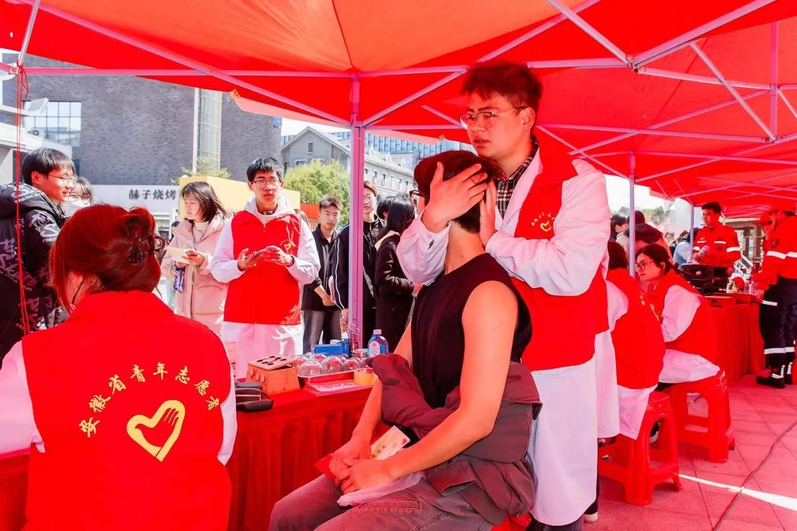 非遗香囊展特色,中医咨询护健康。本月,由共青团安徽省委、安徽省青年志愿者协会主办的“皖美青年 志愿集市”在合肥新站高新区黉街启幕。针灸推拿学院志愿者团队设立了特色展区,积极宣传推广五禽戏教学,悉心教授针灸推拿知识,生动诠释了新时代青年大学生志愿服务精神,受到了广大市民一致好评。