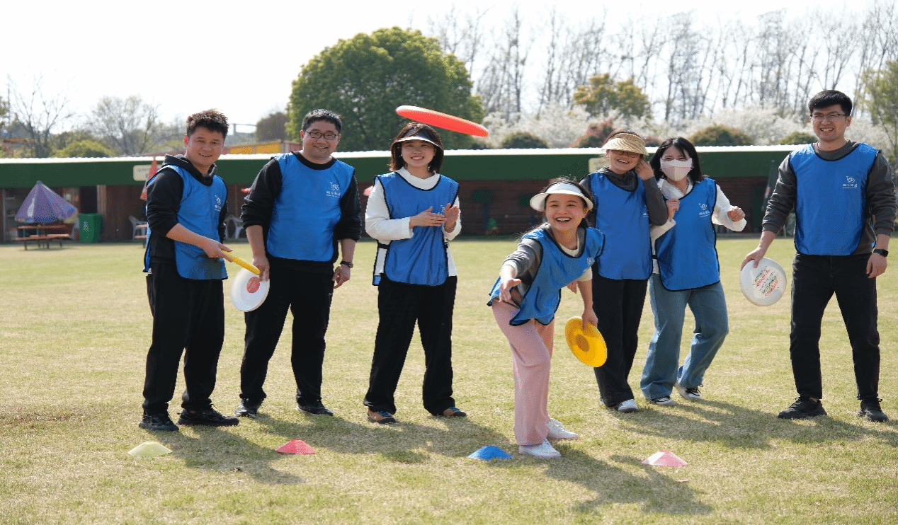 本次活动以“极限飞盘”为主题,分四支队伍进行团队比拼,设置了“破冰”“飞盘九宫格”“飞盘保龄球”“飞盘投篮”“飞盘投掷”等多个活动环节。在破冰环节中各队成员凝共识、聚众智,通过队名、口号、招牌动作等设计指令,营造出团结向上的活动氛围;飞盘活动中辅导员们配合默契,全方位展现优秀的团队组织、昂扬的精神风貌和突出的凝聚力。