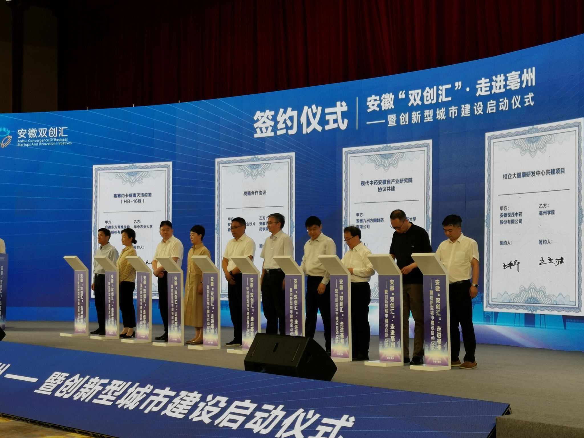 6月27日,由安徽省科技厅、亳州市人民政府共同主办的安徽“双创汇”走进亳州暨创新型城市建设活动在亳州宾馆举行。