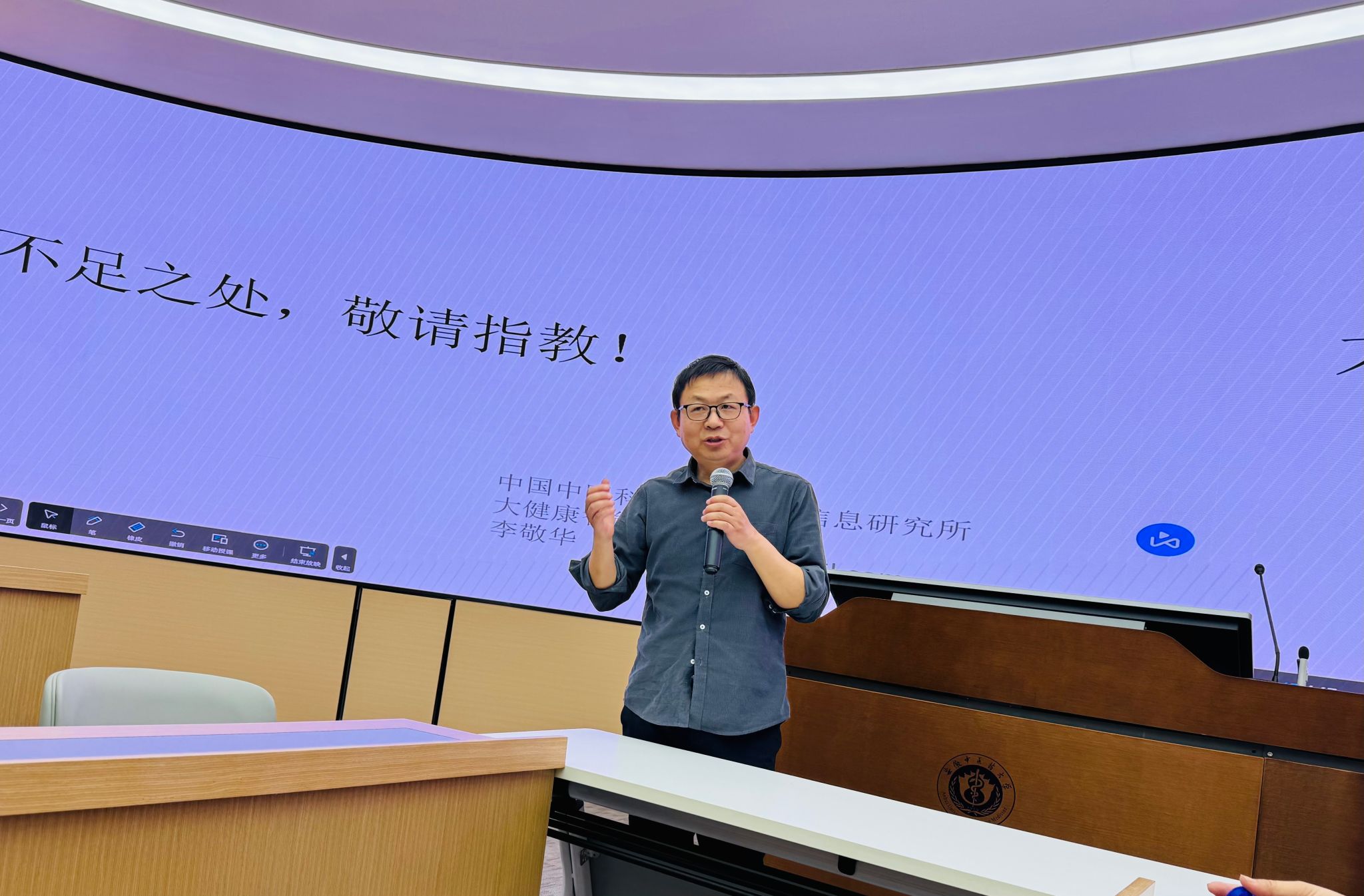 4月18日,中国中医科学院中医药信息研究所大健康智能研发中心主任,李敬华研究员应邀来校作题为“中医活态传承数智化实践与思考”的学术报告。报告会由医药信息工程学院党委副书记、院长阚红星主持,学院全体教师及研究生参加学习交流。