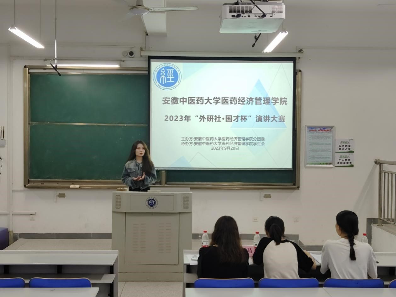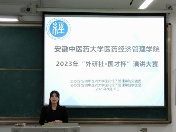 为了营造良好的英语学习氛围,激发同学们学习英语的热情,选拔优秀学生代表参加校赛,医药经济管理学院9月20日在公共教学楼A206举行了“外研社·国才杯”演讲大赛选拔赛。人文与国际交流学院英语教师韩晶晶老师、学院分团委负责人张亚丽老师、上届比赛获得第一名的张欣然同学担任本次大赛评委,大赛共有24位同学报名参加。