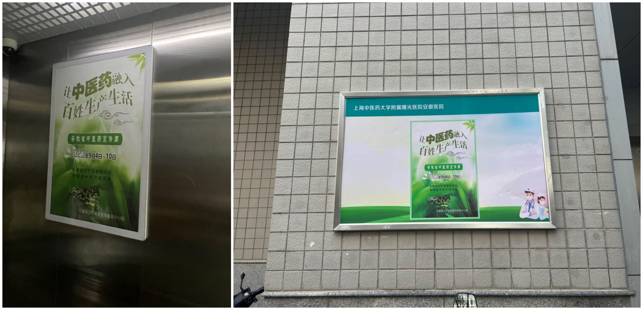 活动期间,医院在门诊LED大屏幕播放安徽省中医药宣传周相关海报,在院区主干道及病区宣传栏张贴安徽省中医药宣传周相关海报,在医院主干道、门诊大厅等醒目位置悬挂内容为“坚持中西医并重,推动中医药事业和产业高质量发展”的横幅。同时在医院官方微信公众号转载一图读懂《安徽省中医药条例》相关法律解读,线上线下全面营造中医药发展的良好氛围。