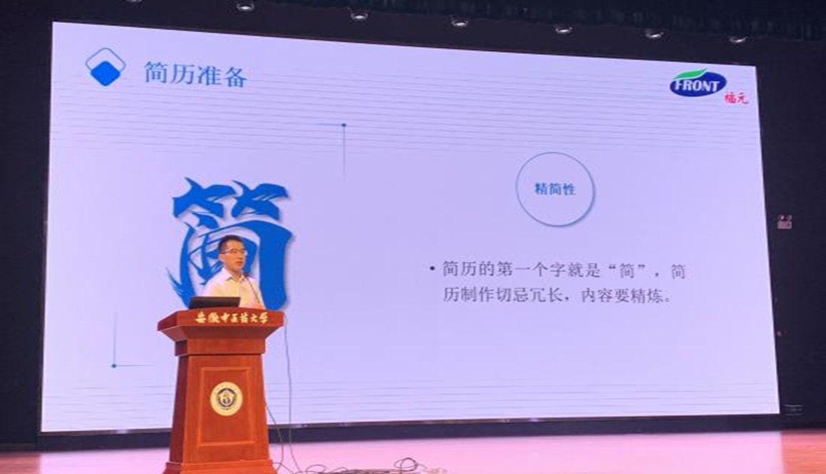 张浩为全体毕业生作了《医药行业大学生就业趋势报告》的专题讲座,讲座从市场分析、企业情况、职业规划、面试指导四个方面展开,鼓励毕业生要对自己的职业有所规划,端正就业态度,走出舒适圈,提高求职紧迫感。