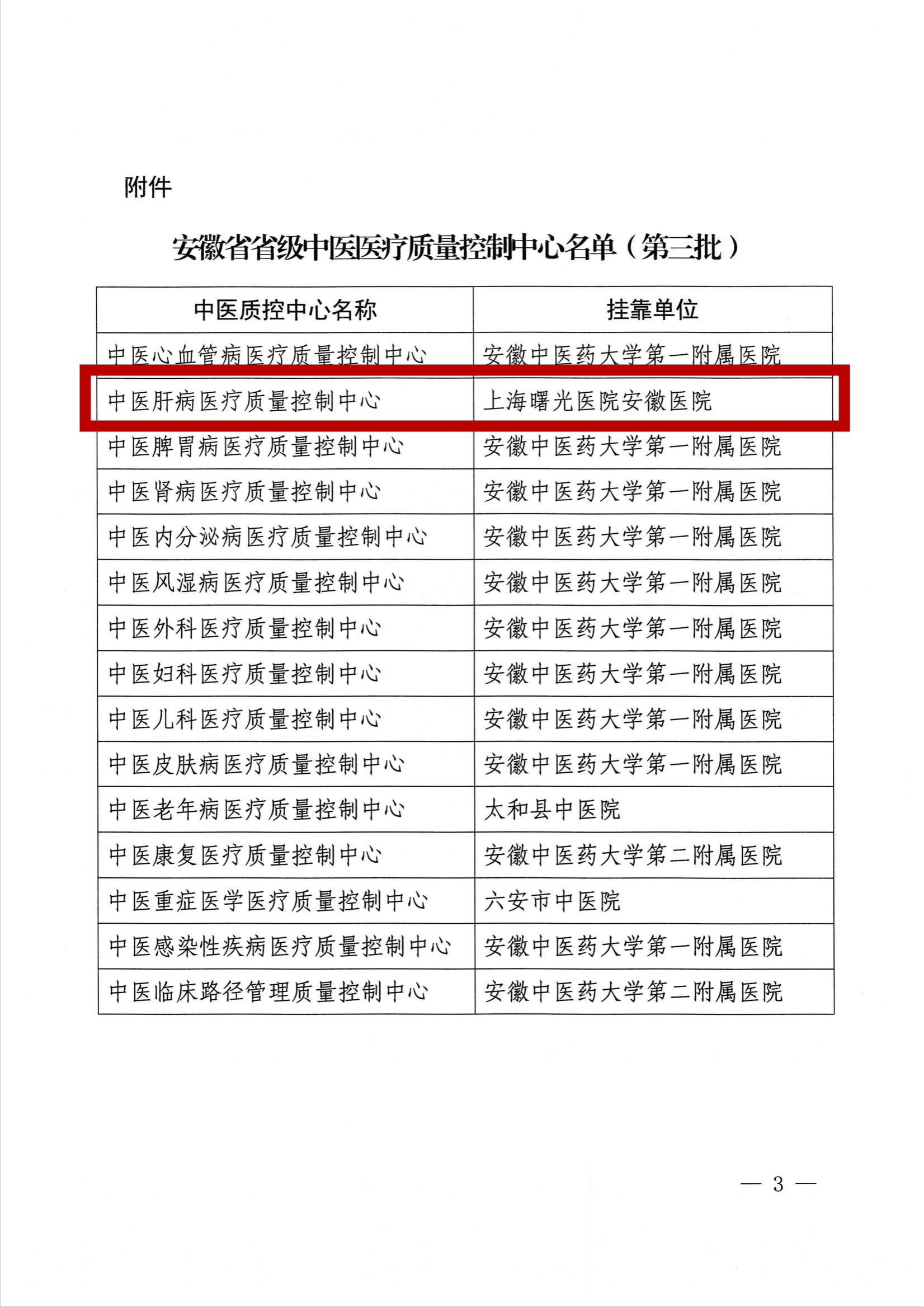近日,安徽省中医药管理局发布了《关于成立中医心血管病医疗质量控制中心等15个省级中医医疗质量控制中心的通知》,上海曙光医院安徽医院获批安徽省中医肝病医疗质量控制中心挂靠单位,肝病科承担质控中心具体工作。