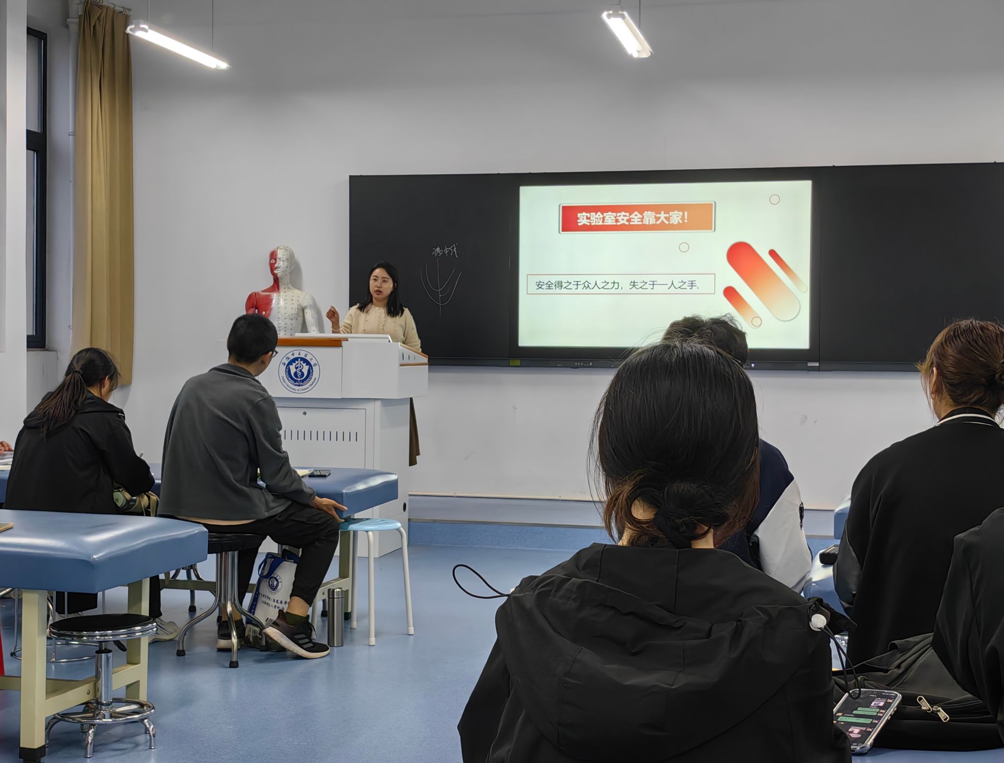 10月12日下午,针灸推拿学院实验实训中心开展学期安全教育培训会。学院大一大二年级班干学委等及学校学生社团负责人参加了培训。