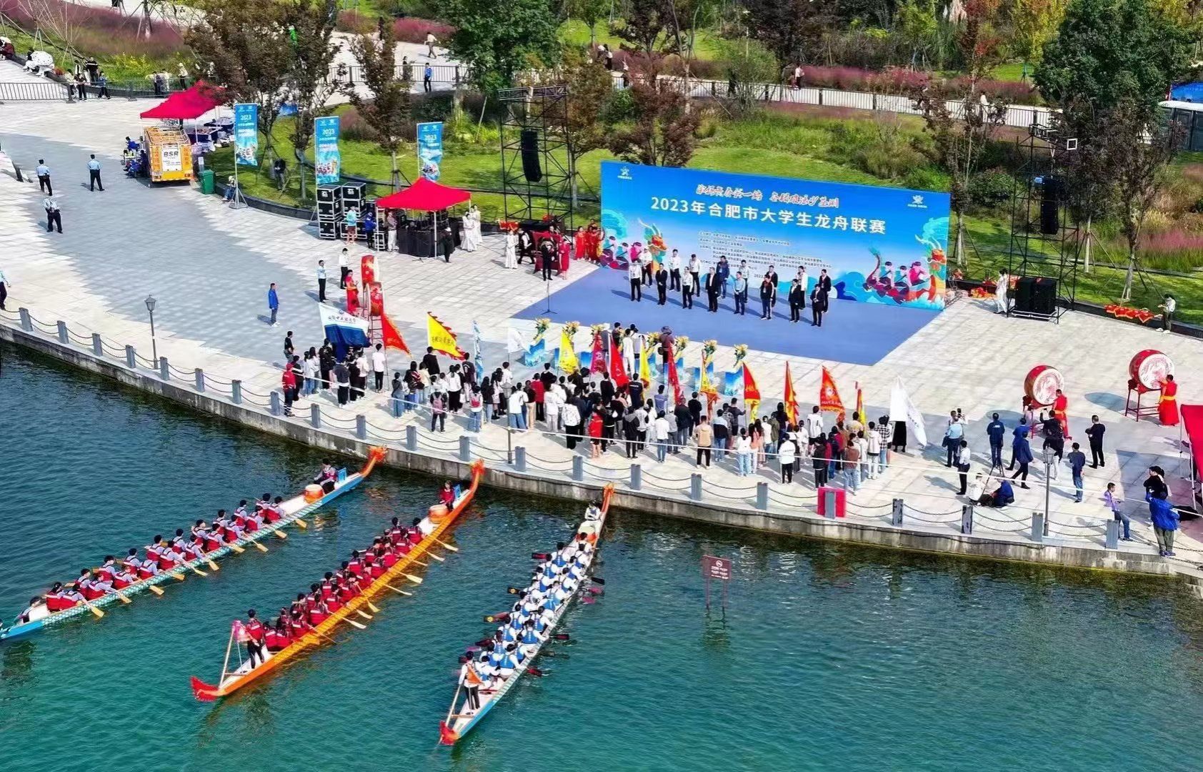 10月14日,合肥市大学生龙舟联赛在少荃湖畔举行。本次比赛由合肥市体育局、新站高新区管委会和安徽省龙舟运动协会共同主办,新站高新区社会发展局承办。16支高校龙舟队共400余人同台竞技、奋楫争先精彩上演水上“速度与激情”,我校首次组队参加龙舟联赛,选手展现了顽强拼搏的精神,汗水托举荣誉,最终摘得三等奖的优异成绩。
