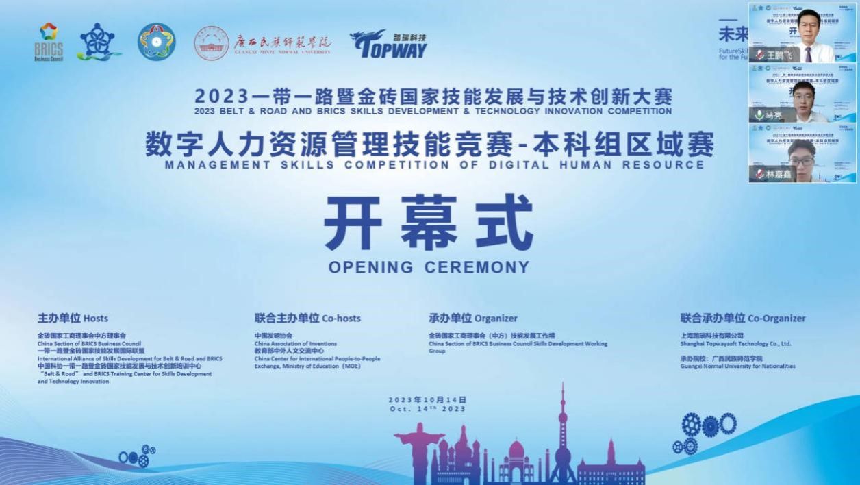2023“一带一路”暨金砖国家技能发展与技术创新大赛数字人力资源管理技能赛项本科组区域赛于10月14日圆满结束。本科组区域赛由南、北两个赛区组成,超千名参赛选手和指导老师,各级领导、行业嘉宾等共同参与。来自全国范围内107所院校、186支参赛队伍参与比赛。