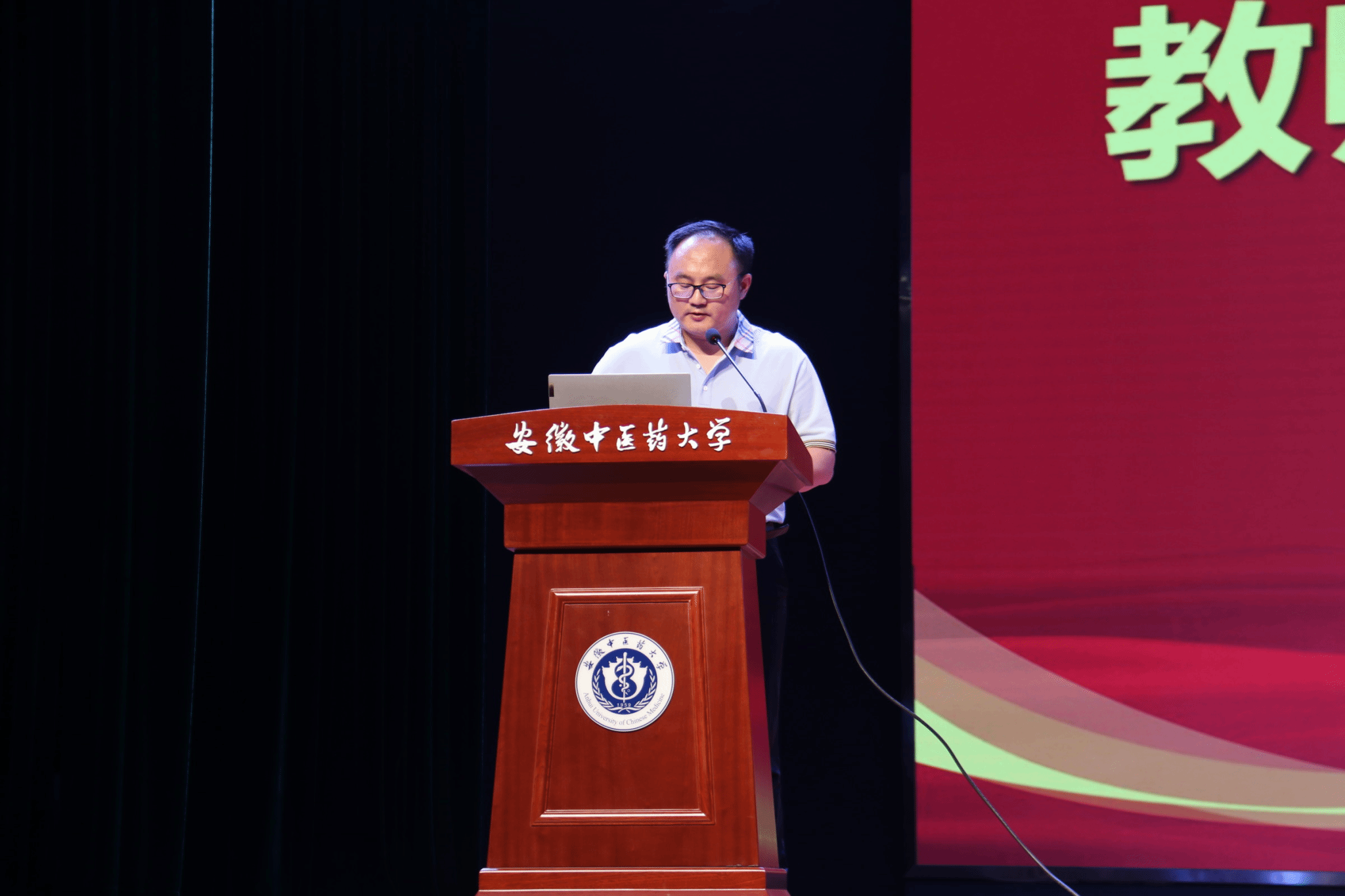 教师代表谷宗运向新生表示热烈欢迎,他希望新生能够心怀家国理想、坚定专业方向、明确人生目标,期待新生能努力奋进,认真对待每一门课程设计与实验课,充实自己的大学生活,在医药信息工程学院立梦、逐梦最后圆梦。
