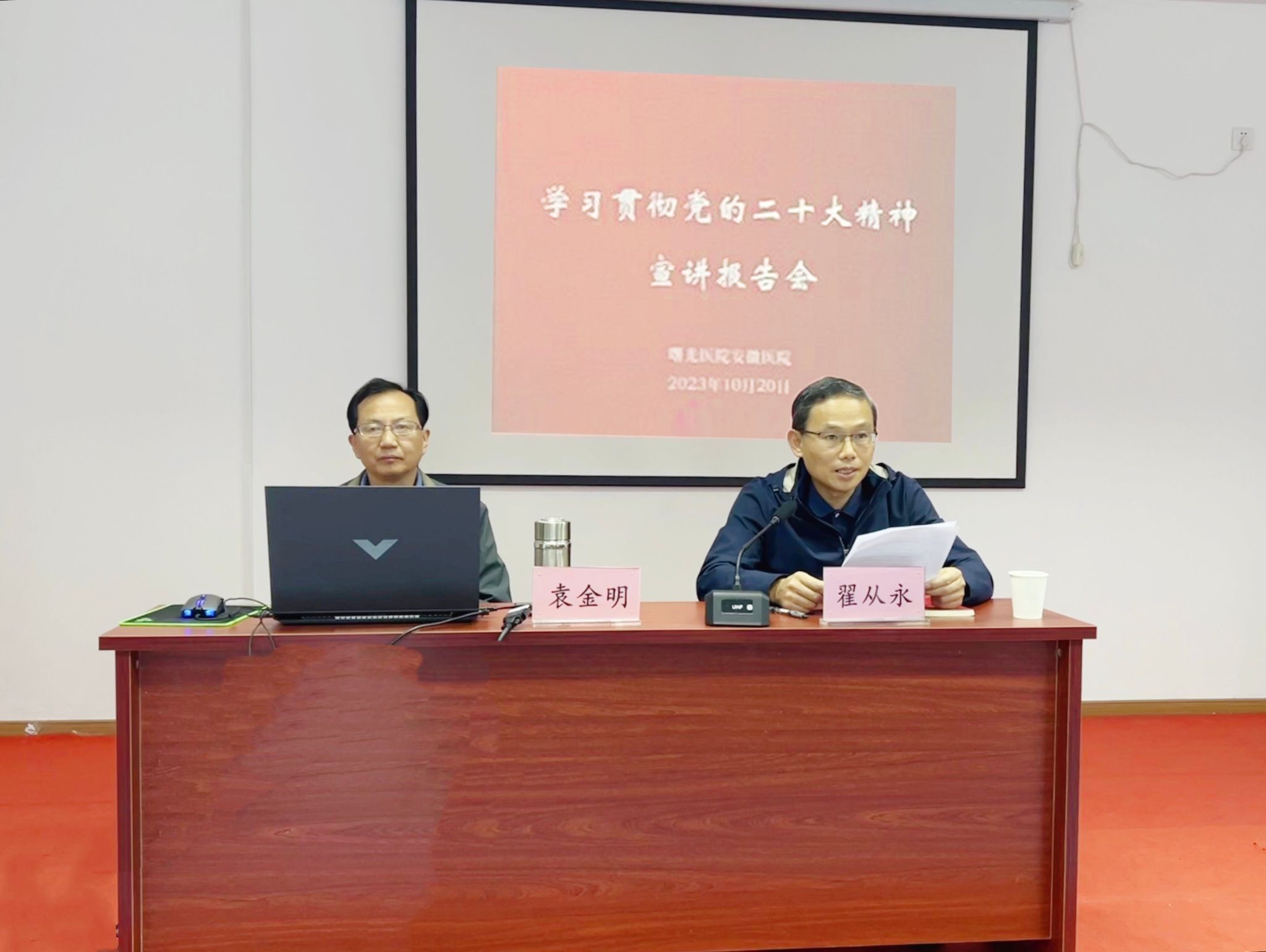 10月20日下午,依托医院社区党建共建平台,医院邀请合肥市军休四所的“星火”宣讲团团长、蜀山区五里墩“先锋”宣讲团的副团长袁金明教授开展学习党的二十大精神专题党课宣讲,全体党员、团员、统战人士代表参加会议,上海曙光医院安徽医院党委副书记翟从永主持会议。
