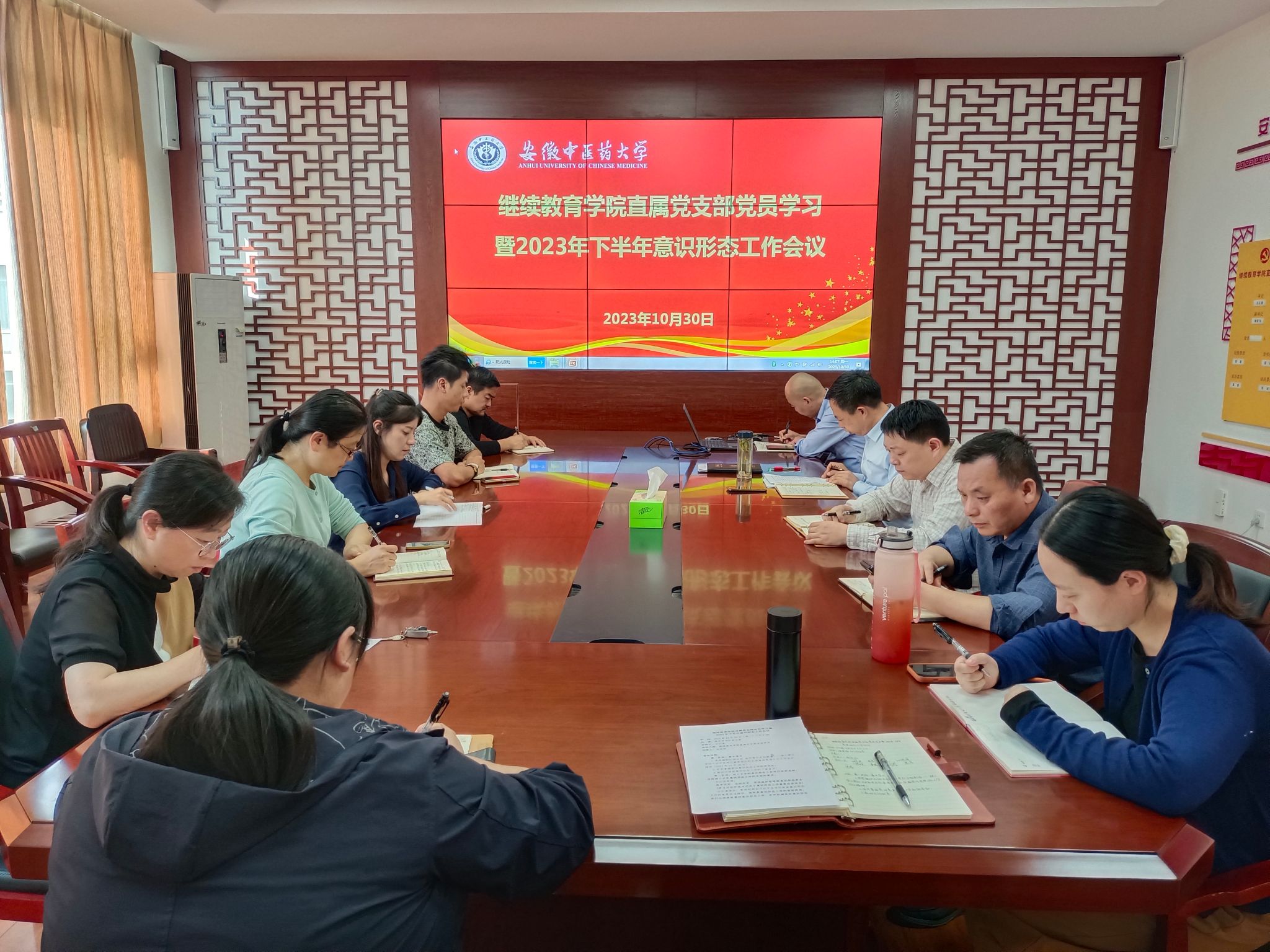 10月30日下午,继续教育学院直属党支部召开党员学习暨2023年下半年意识形态工作会议。会议由党支部书记方正清主持,党支部全体党员参加会议。