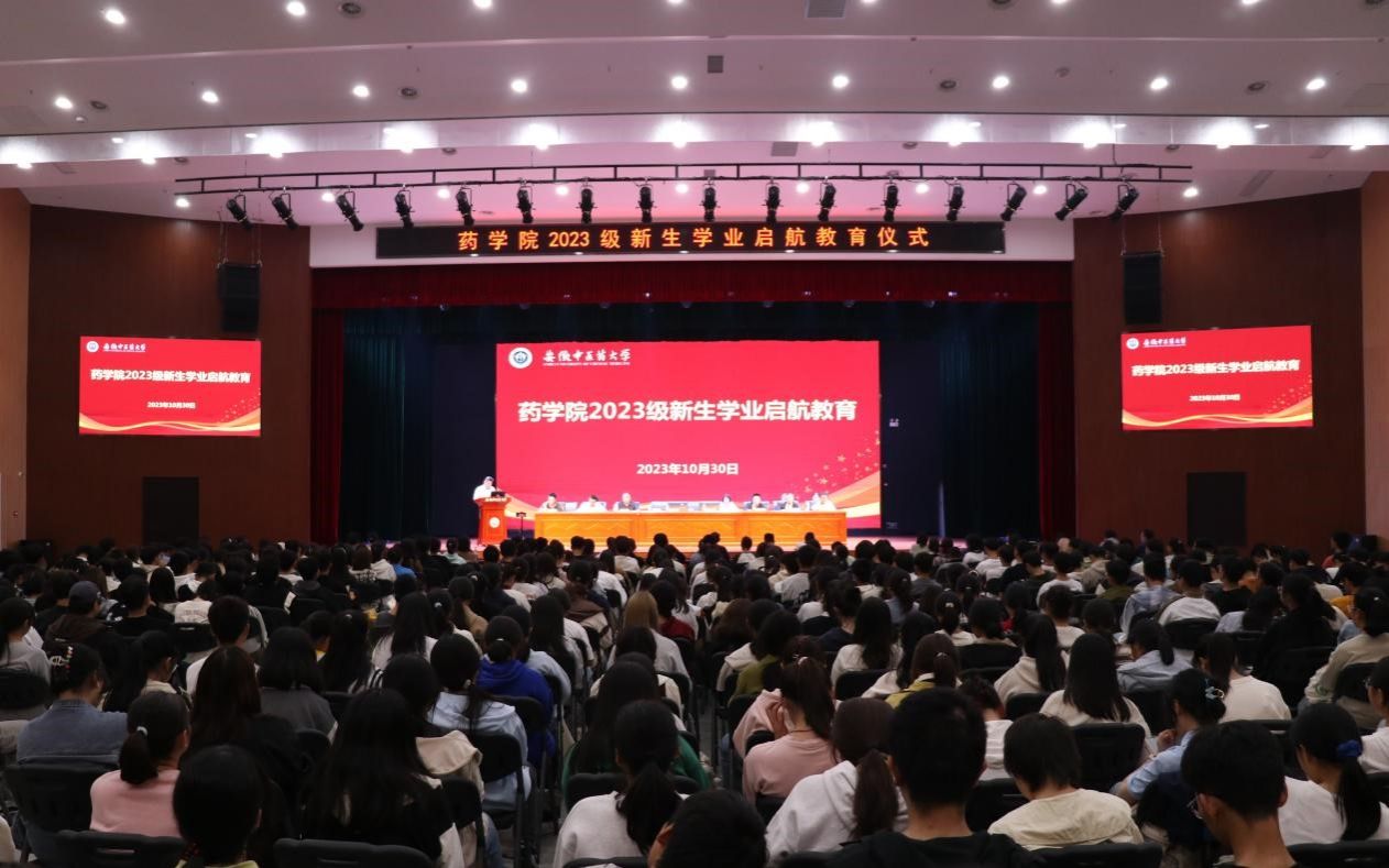 10月30日晚,药学院2023级新生学业启航教育仪式在大学生活动中心举行。药学院党政领导、教学督导、系(中心)主任、分团委副书记、2023级新生辅导员、班主任,全体2023级新生、部分老生代表参加大会,学院党委副书记徐先韬主持仪式。