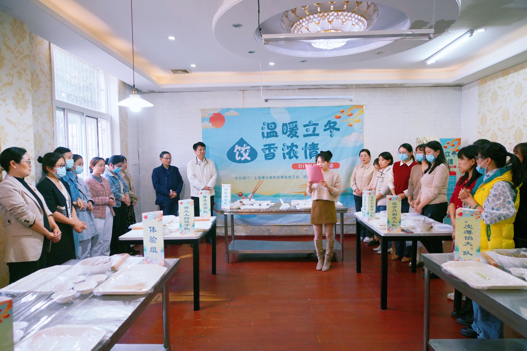 立冬,意味着生机开始闭蓄,万物进入休养、收藏状态。为了弘扬中国传统文化,增进职工团结协作,11月8日,上海曙光医院安徽医院医院党委工作部(团委、工会)、后勤保障部联合举办了以“温暖立冬 饺香浓情”为主题的DIY包饺子比赛。此次活动特邀学校党委常委、医院党委书记聂久胜,医院党委副书记翟从永出席,来自临床、行政的八支队伍参加比赛,活动邀请部分院领导、职能科室负责人代表及食堂负责同志担任评委。