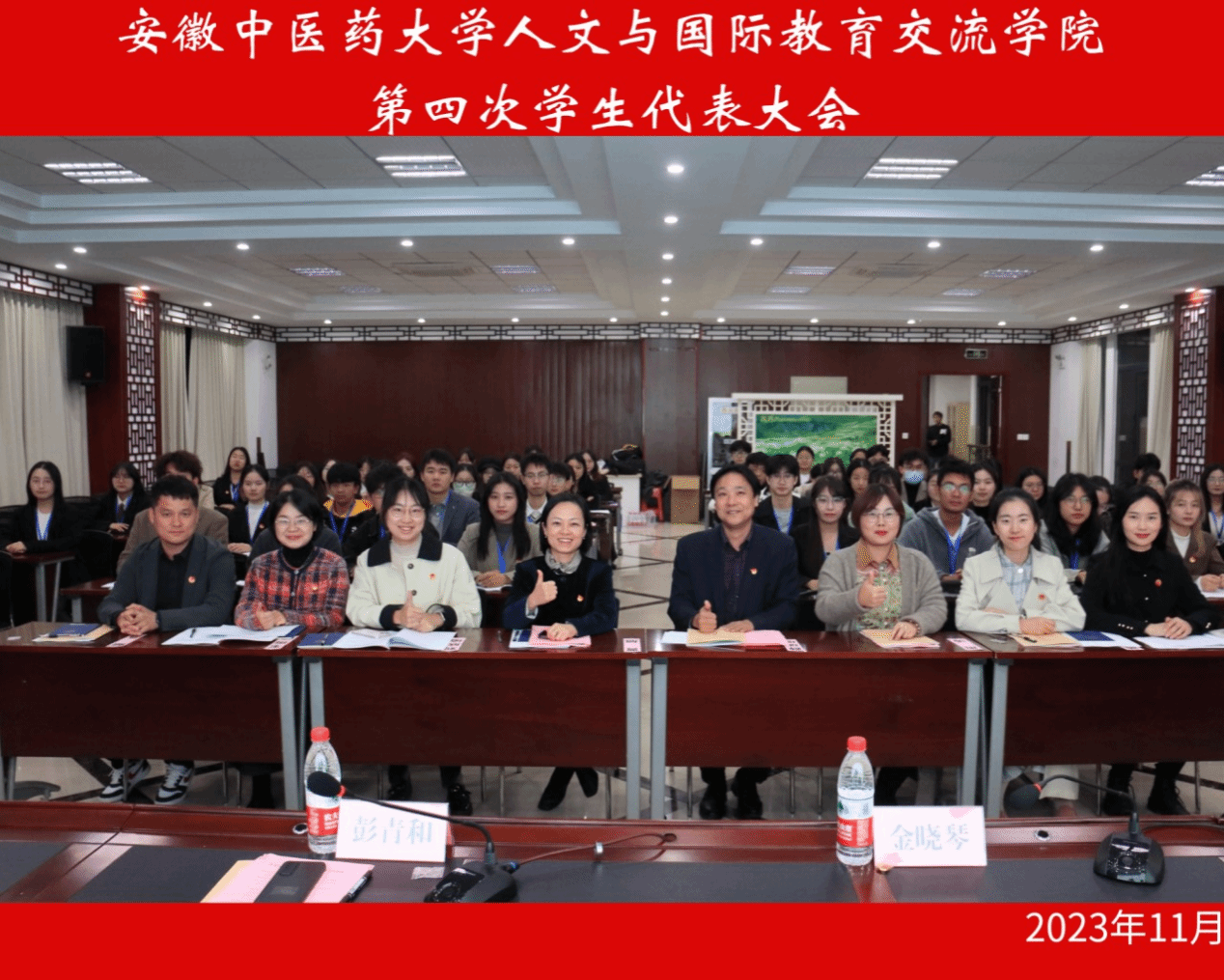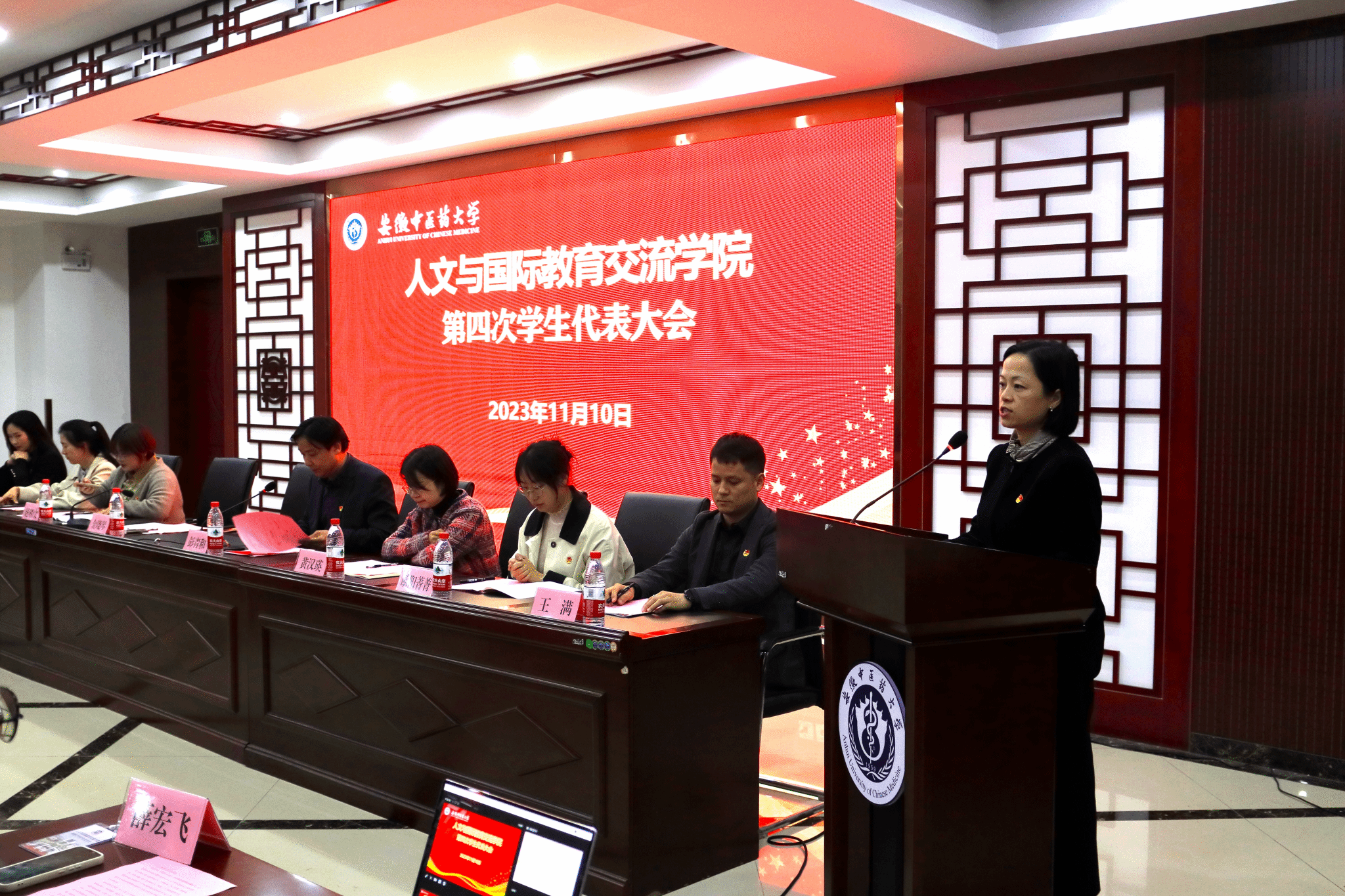 11月10日,安徽中医药大学人文与国际教育交流学院第四次学生代表大会于惟新楼380沁馨堂顺利召开。学院党总支书记金晓琴、副书记彭青和,校团委组织发展科、学院工会、分团委、学工办主要负责人,辅导员及全体学生代表、部分列席代表和兄弟院系学生代表参加大会。