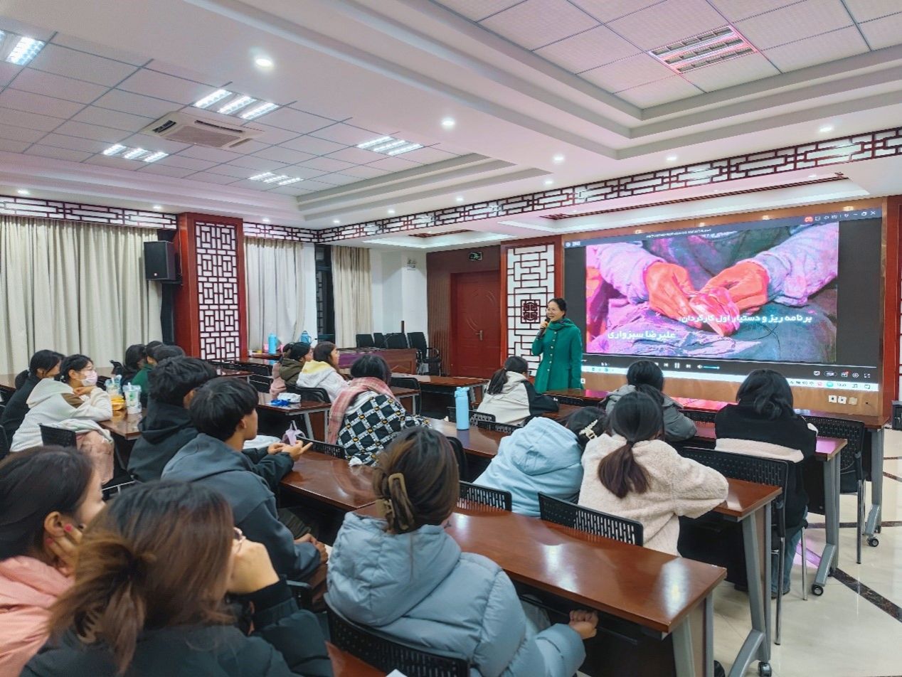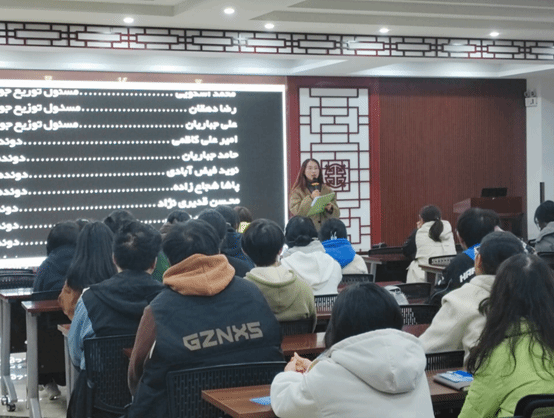 汤青向同学们推荐本次观看影片——《天堂的孩子》。她用问答的形式逐步引出选择该影片的目的,希望大家用心享受影片带来的欢乐与陶冶。同学们沉浸在阿里和家人朴素温情的故事中,时而感动于兄妹的相互扶持,时而喜悦于阿里父子找到工作,贫困的生活在一家人的乐观奋斗中渐渐出现转机。电影结束后,汤青将电影情节与大家的生活实际相联系,启发同学们思考什么是幸福,鼓励彼此互相传递温暖,并简述心理资本的概念和提升方法。