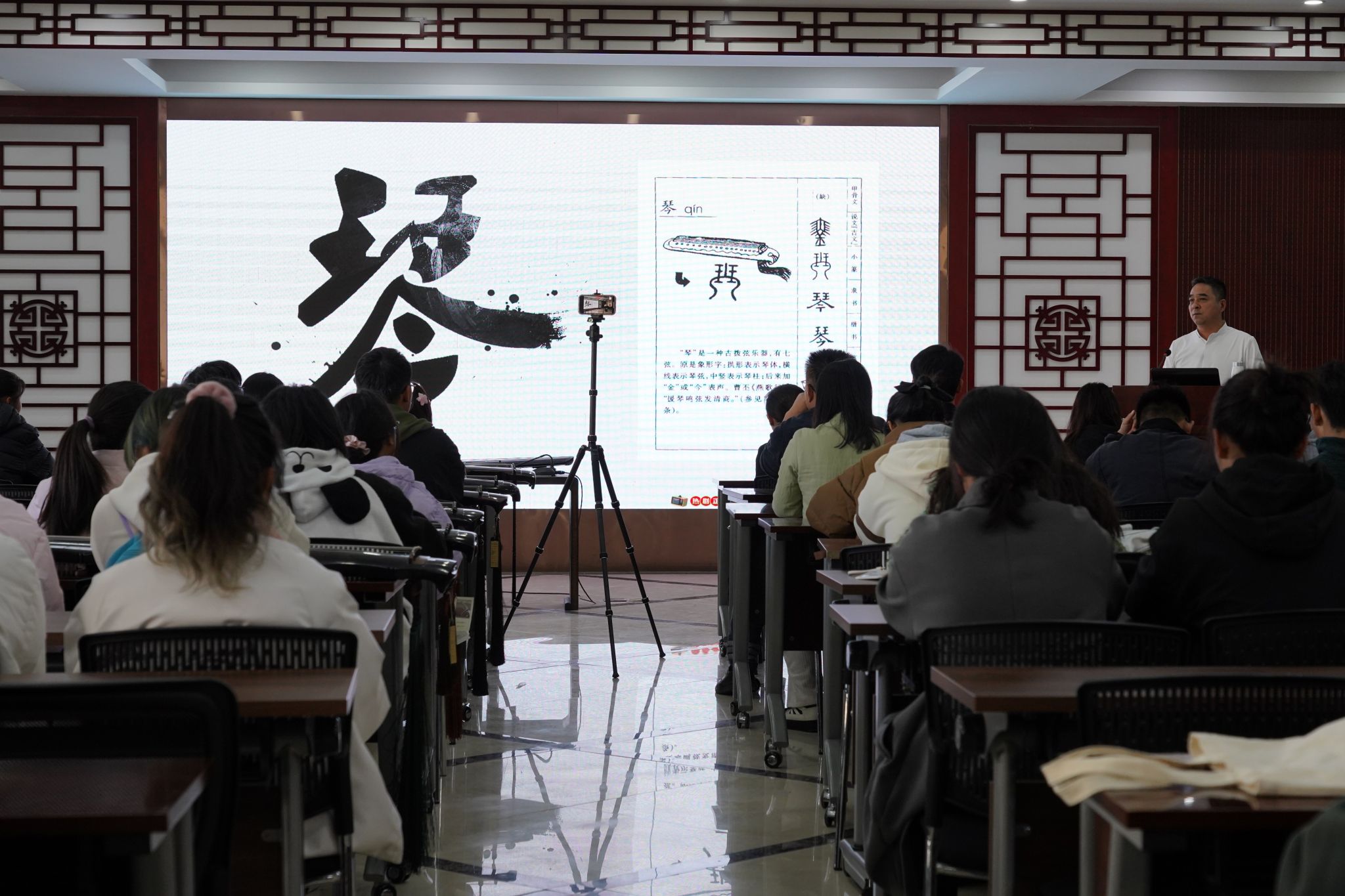 11月17日下午,人文与国际教育交流学院美育中心艺术俱乐部特别邀请非物质文化遗产——梅庵派古琴演奏非遗传承人彭韬老师及其团队在沁馨堂380举办了美育系列讲座。学院党总支书记金晓琴、副院长昂文平、美育中心主任李菁菁及百余名学生参加此次活动,金晓琴主持活动。