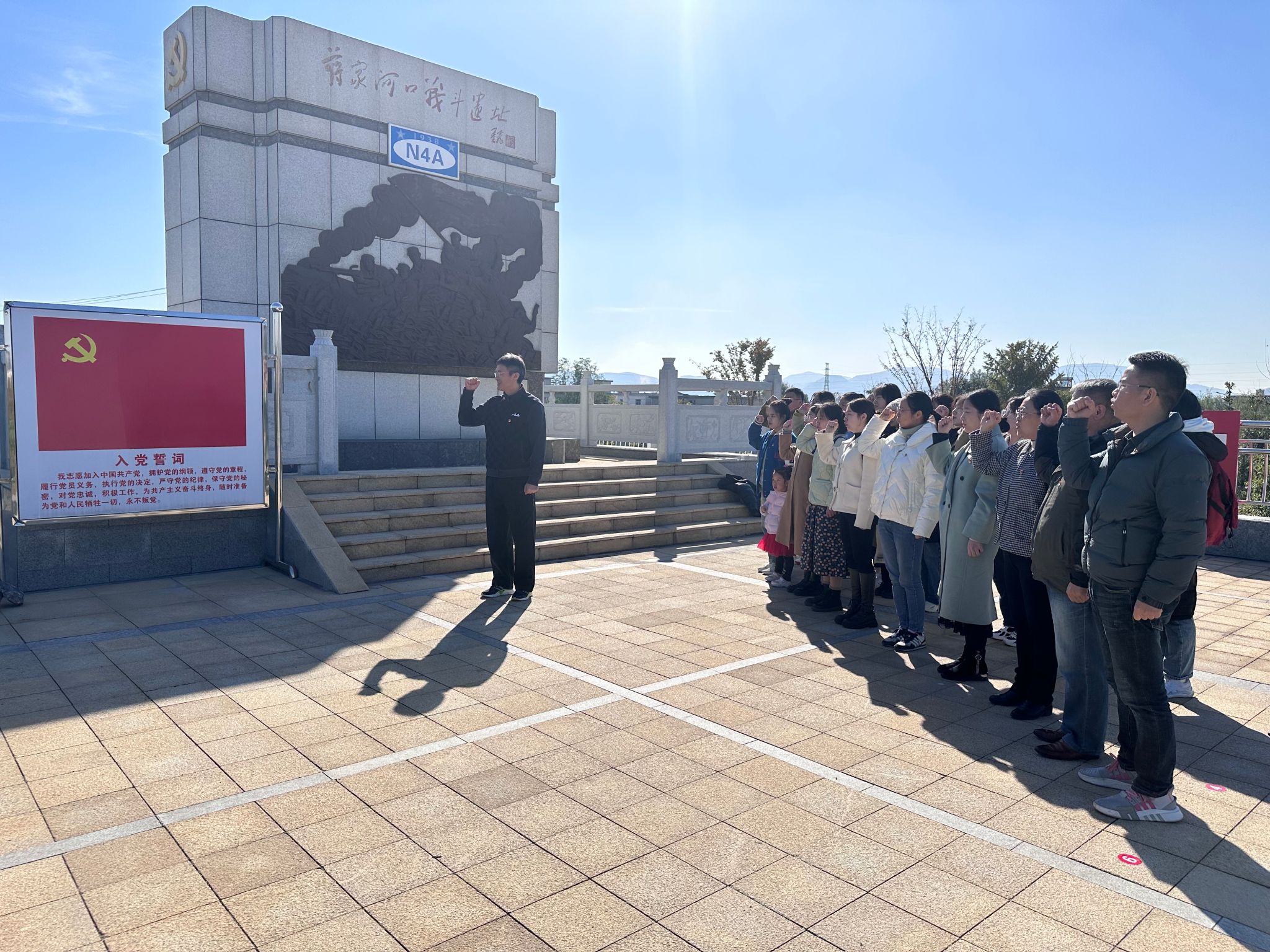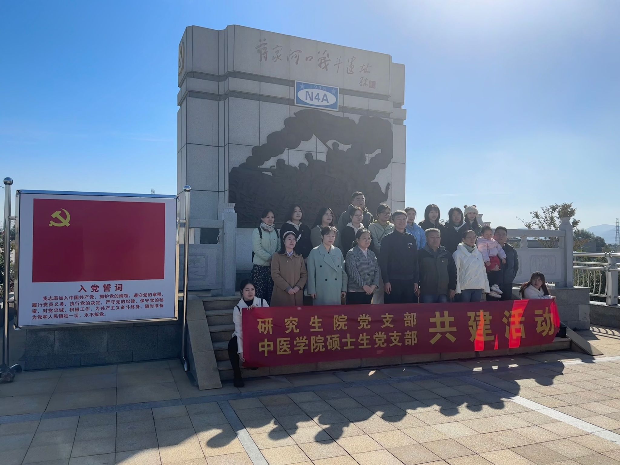在蒋家河口战斗遗址广场上,面向鲜红的党旗,中医学院党委书记方晓带领研究生院党支部和中医学院硕士生党支部全体党员重温了入党誓词。铿锵有力的誓词,一字一句,神圣而豪迈,体现了全体党员对中国共产党的无限忠诚。
