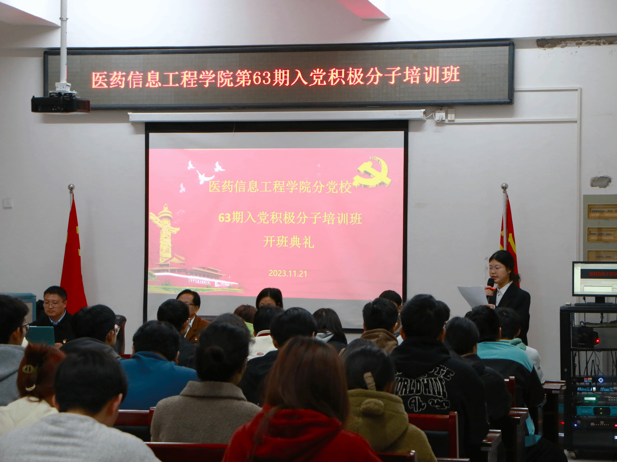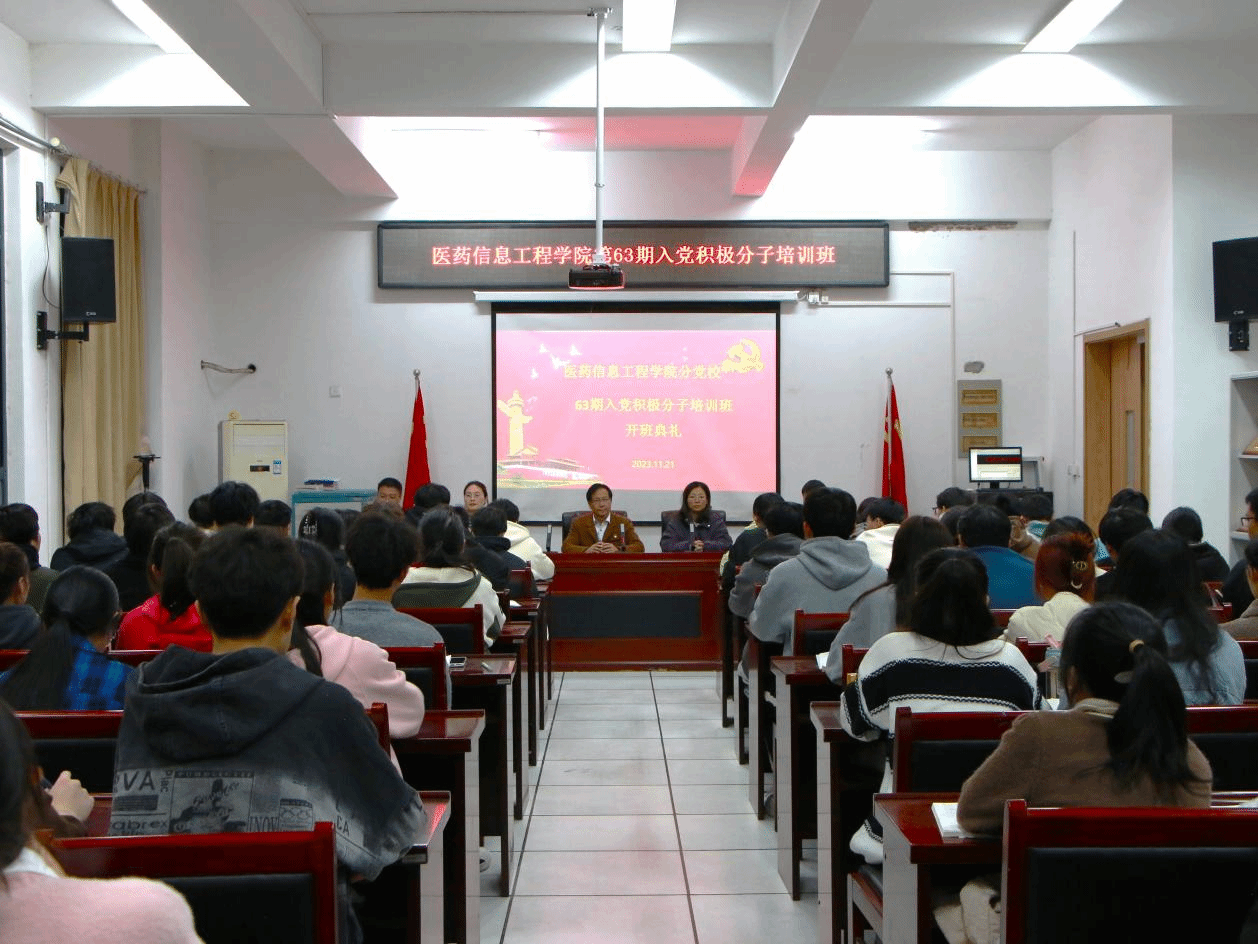 11月21日,医药信息工程学院分党校举行第63期入党积极分子培训班开班典礼。学院党委书记吴成海,院党委办、各学生书记等参加。