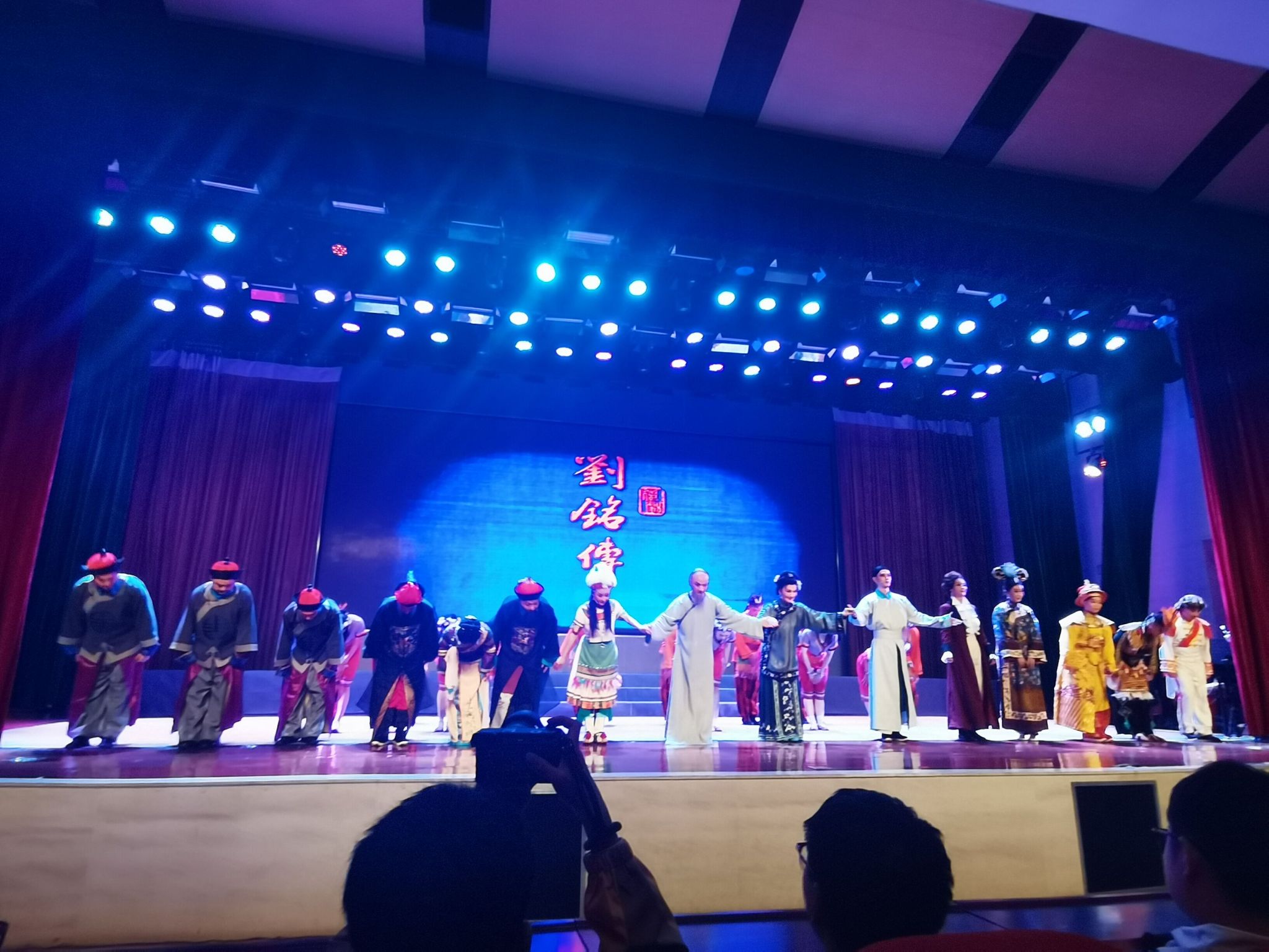 徽剧《刘铭传》撷取若干历史片段,用戏剧手法生动展现了刘铭传保卫台湾的英勇壮举、建设台湾的历史功绩和含恨离台的悲壮晚年。该剧在保留原剧特色基础上,创新运用了池州傩戏、青阳腔的艺术表现手法和唱腔,结合光电声响等现代技术,为古老徽剧注入新的活力。通过精彩传神的演绎、跌宕起伏的剧情,成功刻画了足智多谋、英勇无畏、深明大义的刘铭传形象,深深感染了在场师生。