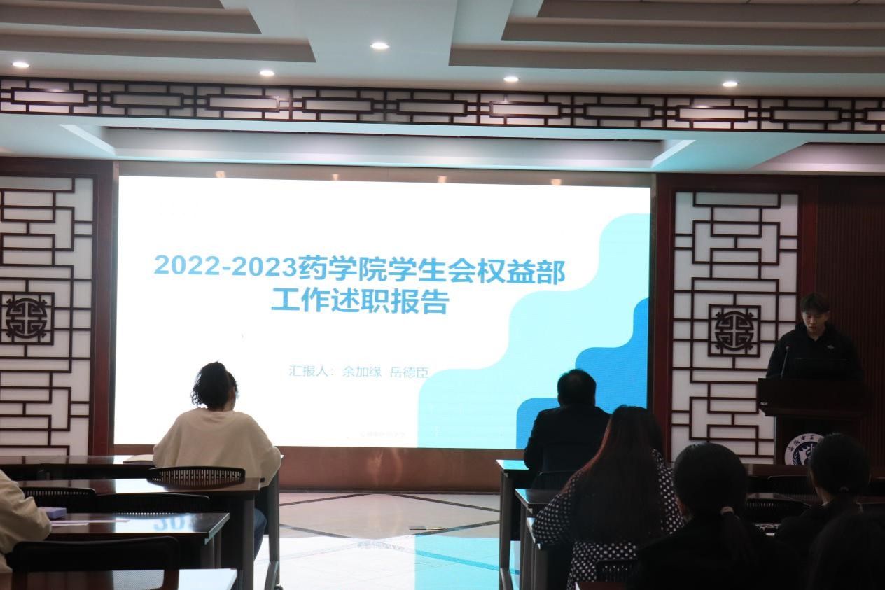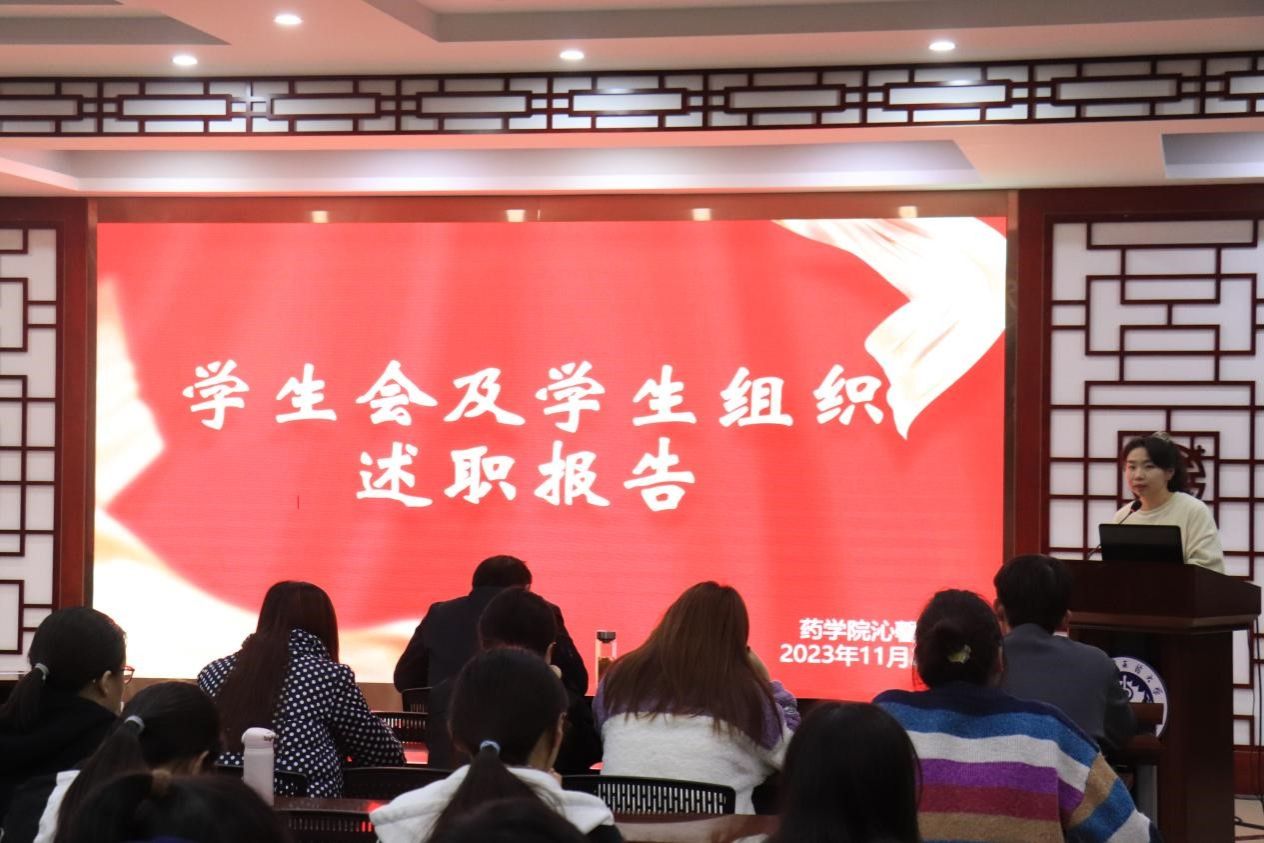 为加强药学院学生会与同学的沟通与联系,提升学生会服务广大学生的职能,11月20日晚,药学院在沁馨堂会议室召开2022-2023年度学生会述职报告暨组织生活会。药学院党委副书记徐先韬、分团委副书记聂欣悦及药学院2021、2022、2023级各班学生代表参加此次会议。本次会议由药学院分团委副书记聂欣悦主持。