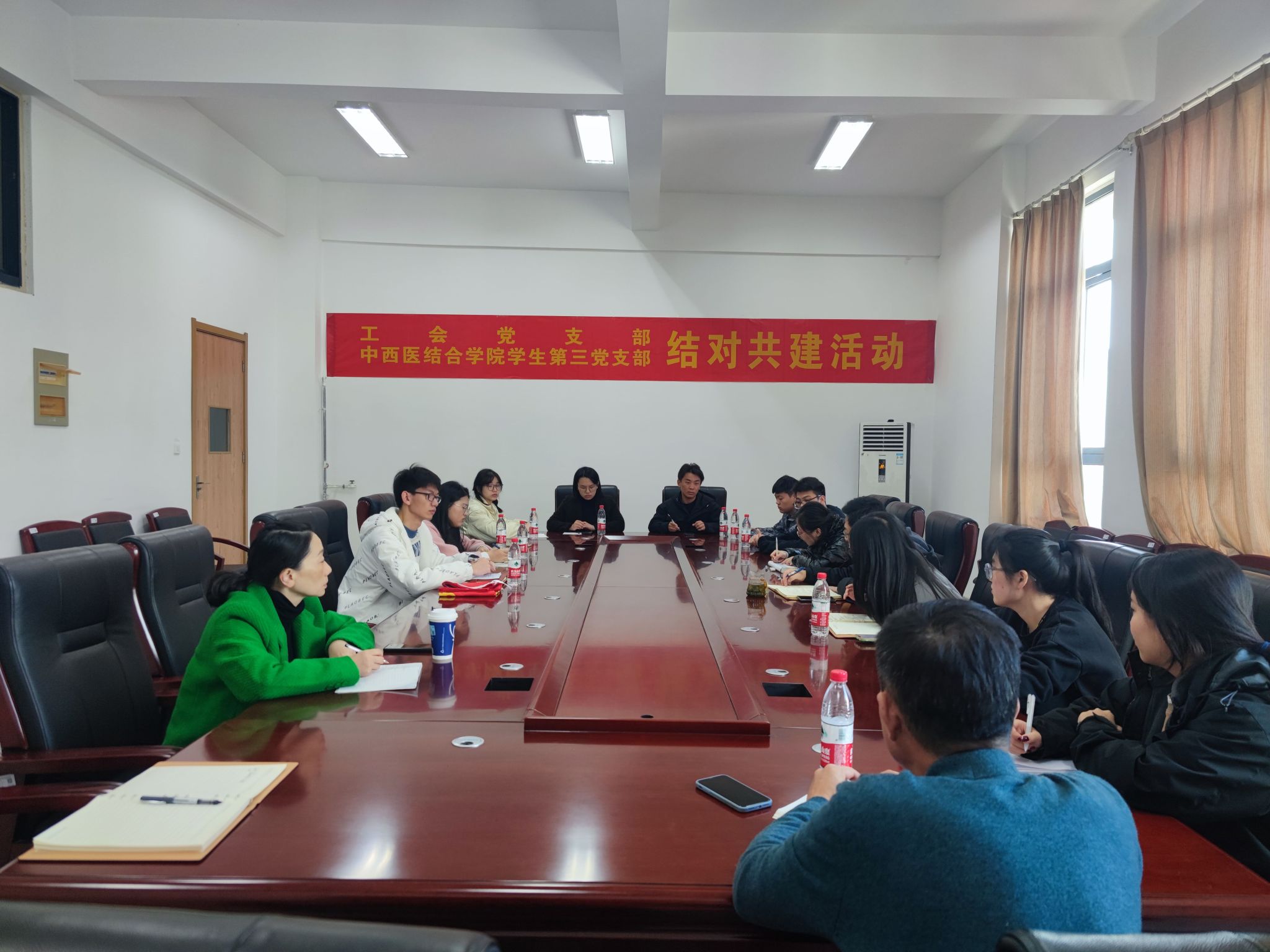 11月24日中午,机关党委工会党支部和中西医结合学院第三学生党支部在惟是楼475会议室召开结对共建座谈会。会议由工会党支部书记李舰主持,工会党支部全体党员、工会工作人员、中西医结合学院第三学生党支部书记李欢欢及学生党员代表参加。