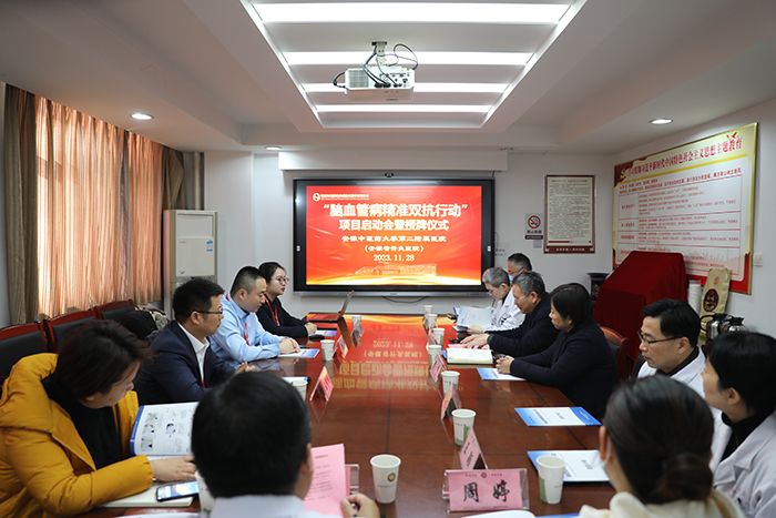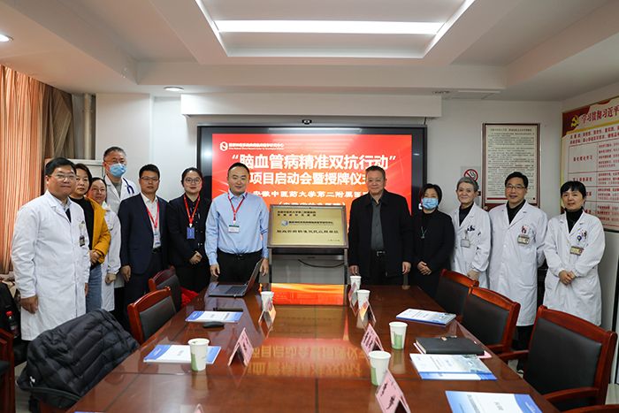 11月28日,第二临床医学院举行“脑血管病精准双抗行动”项目启动会暨授牌仪式。国家神经系统疾病临床医学研究中心项目管理部转化组组长邓弋、学术组学术经理罗林娜、转化组区域项目经理王修明以及第二临床医学院党委副书记、院长董昌武,副院长李梦出席会议,医务部、科研科负责人,脑病中心各主任参会。会议由医务部主任吴杰主持。